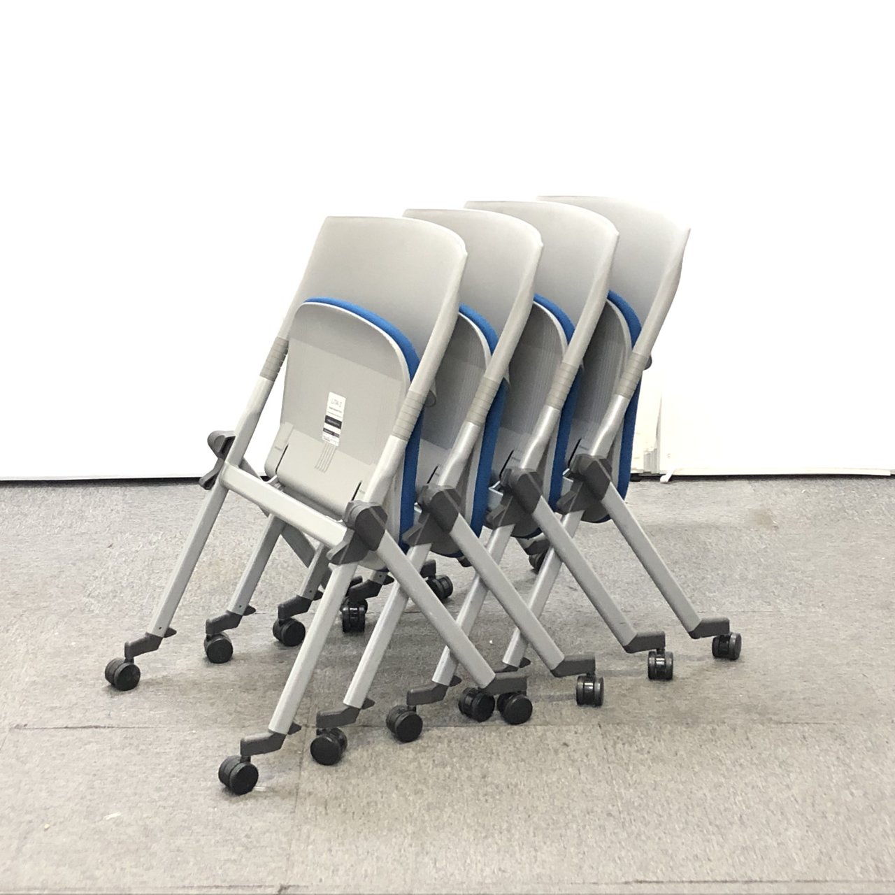 オカムラ製のブルーカラーのネスティングチェア、4脚セットです!
