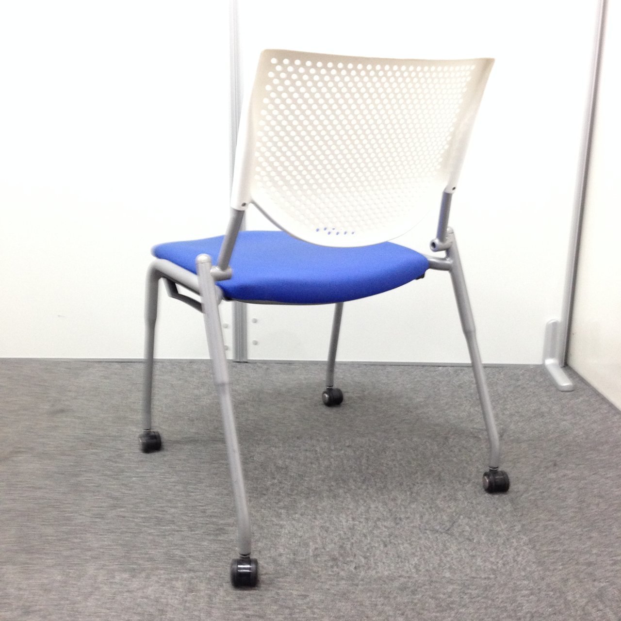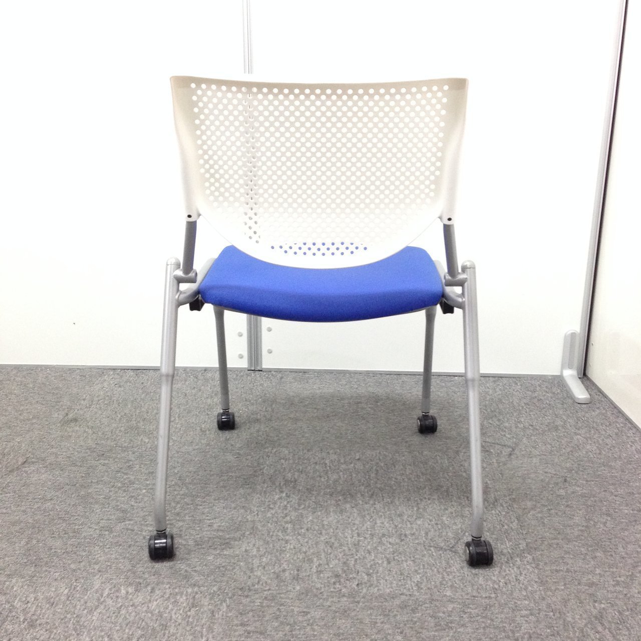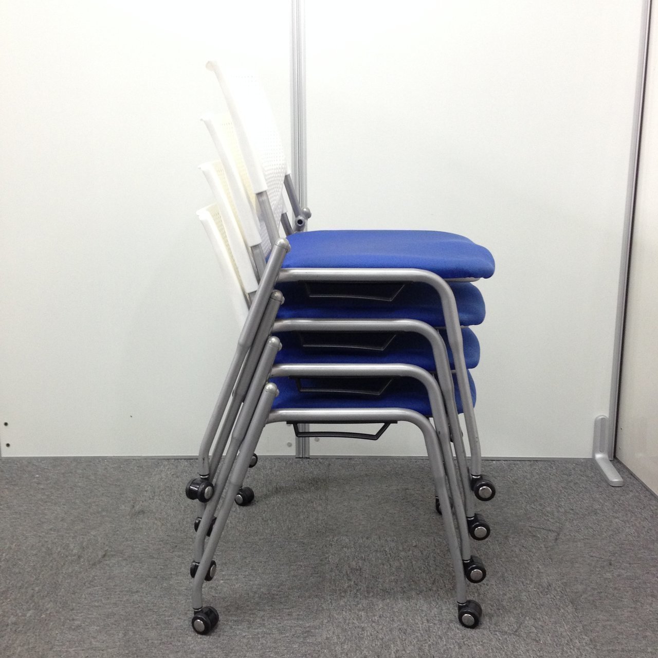 【4脚セット】キャスター付きスタッキングチェア オカムラ okamura プロスタック ブルー 背もたれ ホワイト