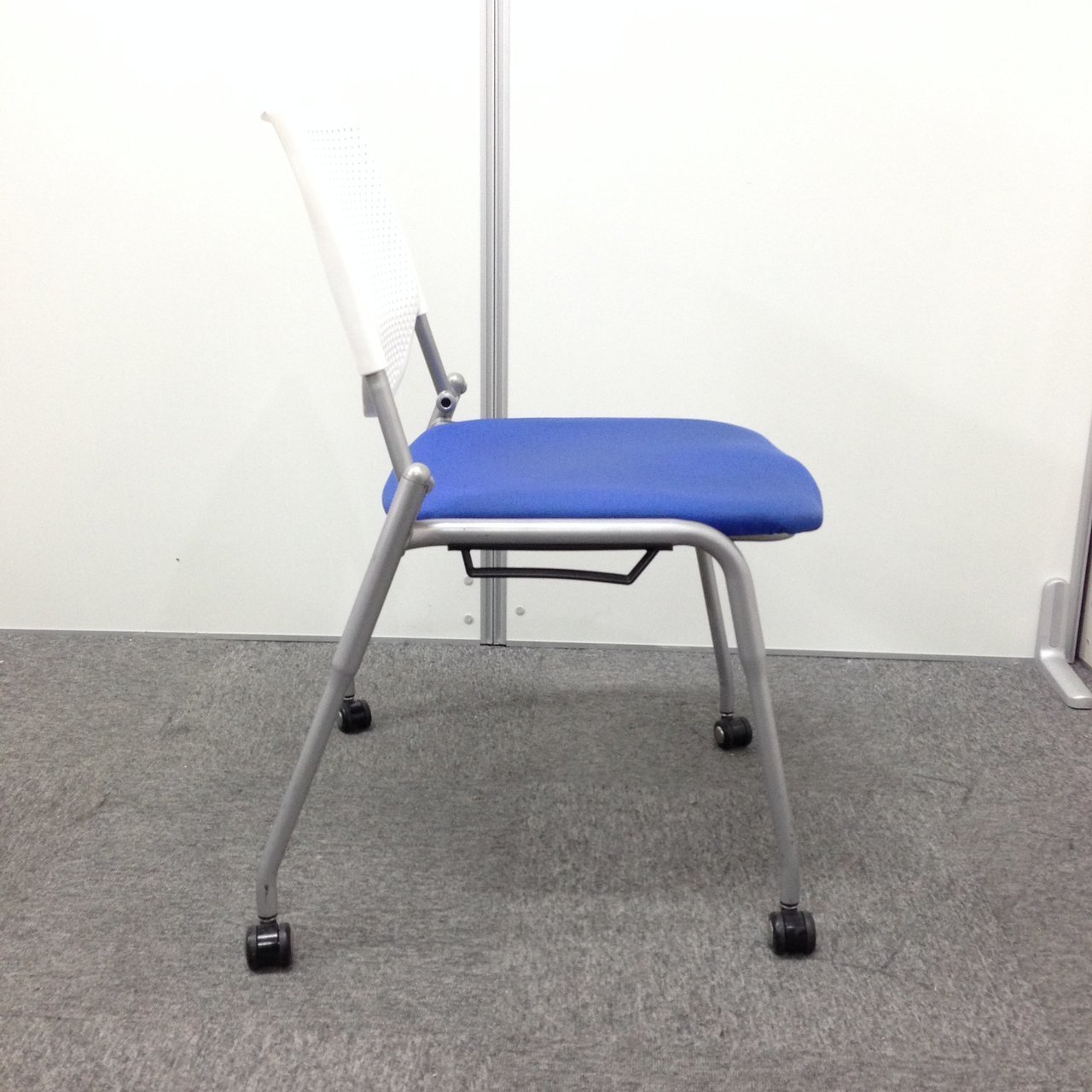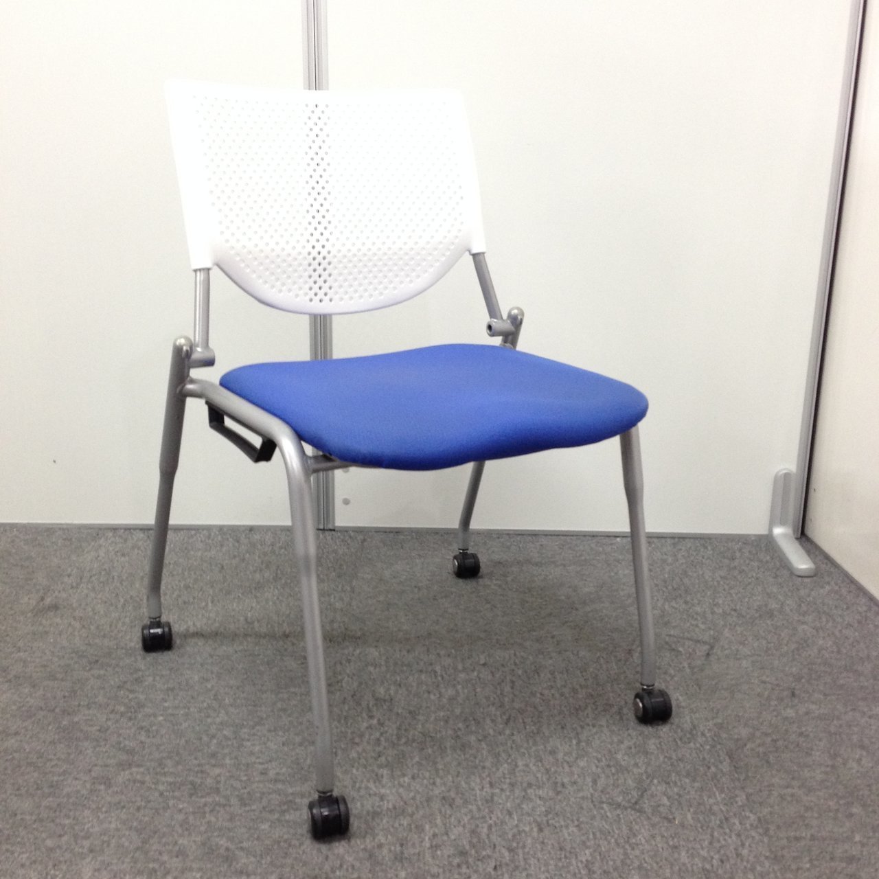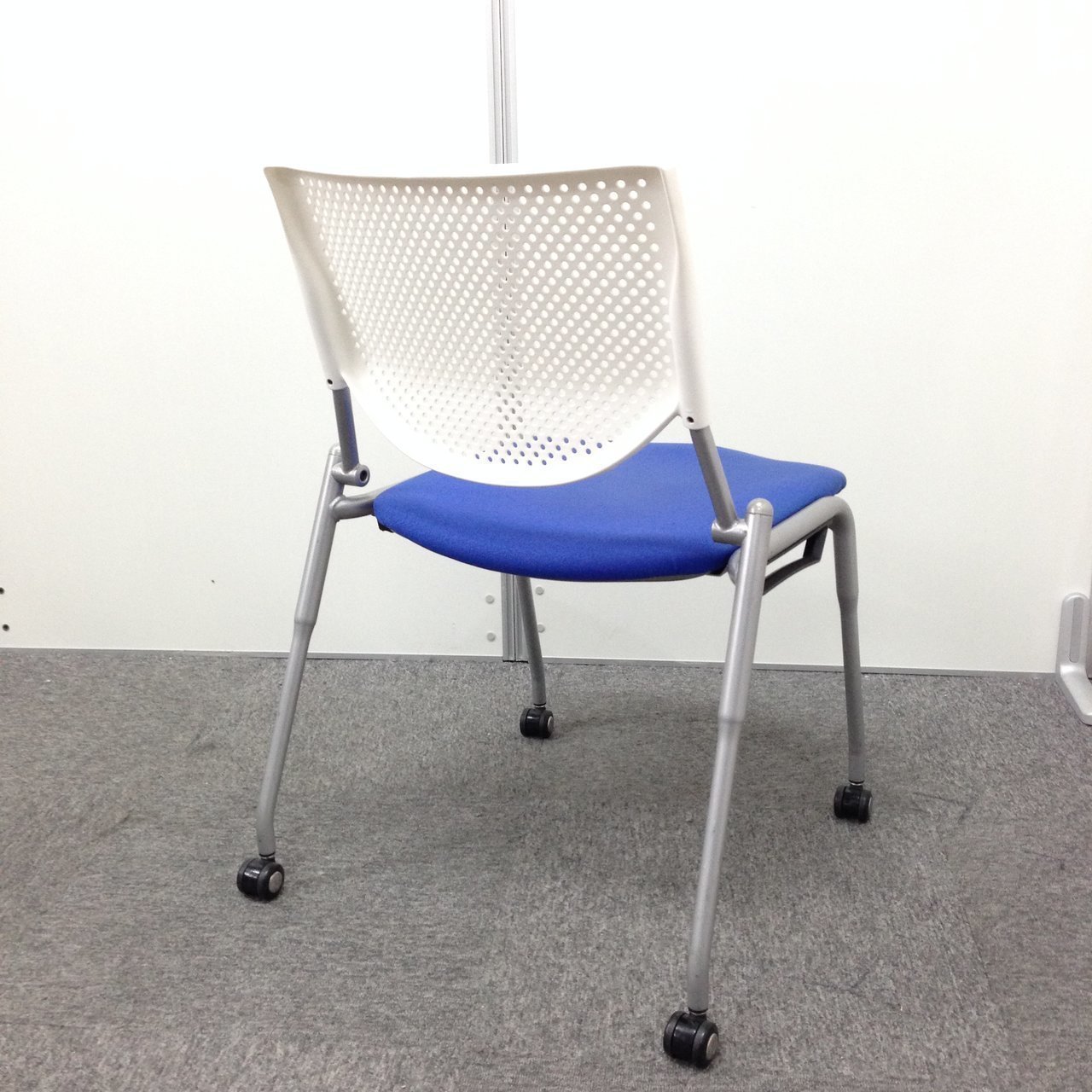 【4脚セット】キャスター付きスタッキングチェア オカムラ okamura プロスタック ブルー 背もたれ ホワイト