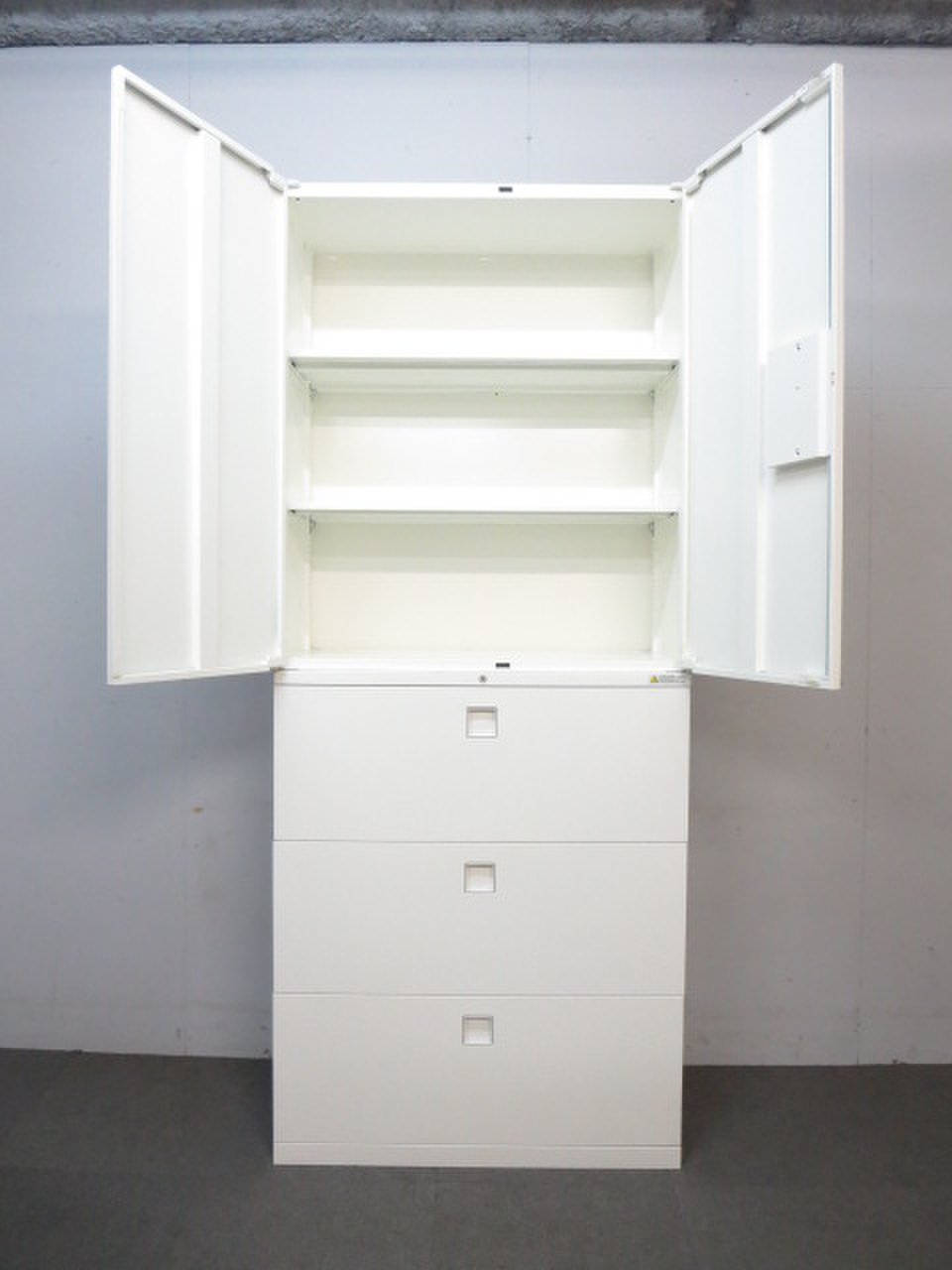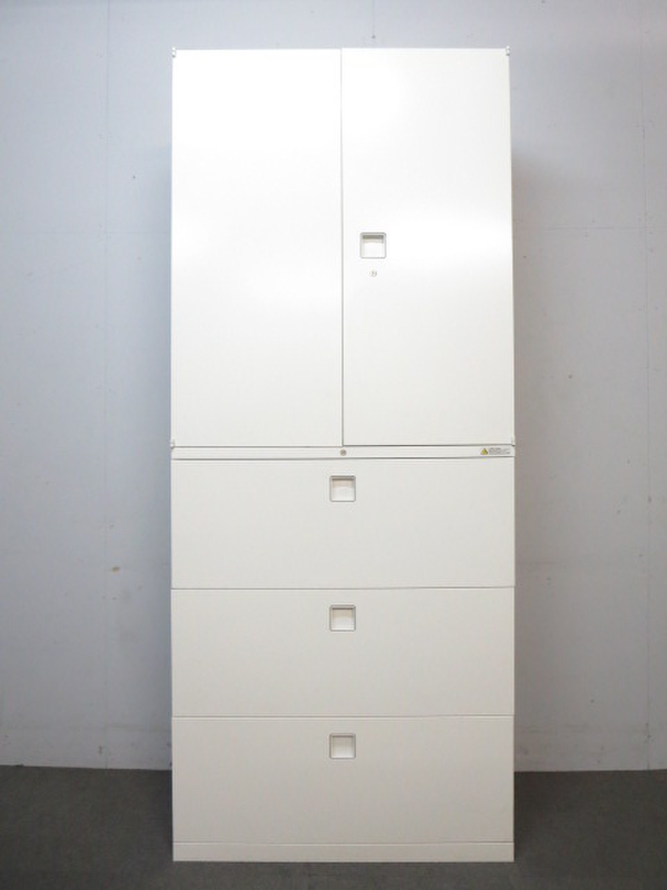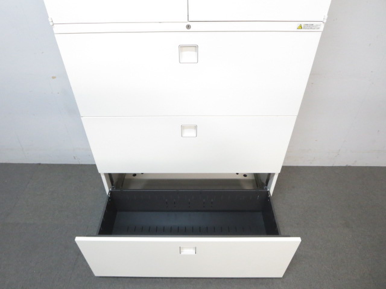 - 一部不具合ありそ引出の開閉不可、施錠不可、棚板無しといったの書庫の本来の効用を果たすための機能以外の一部が使用不可(例、扉、引出の開閉がしづらいなどがある。 )