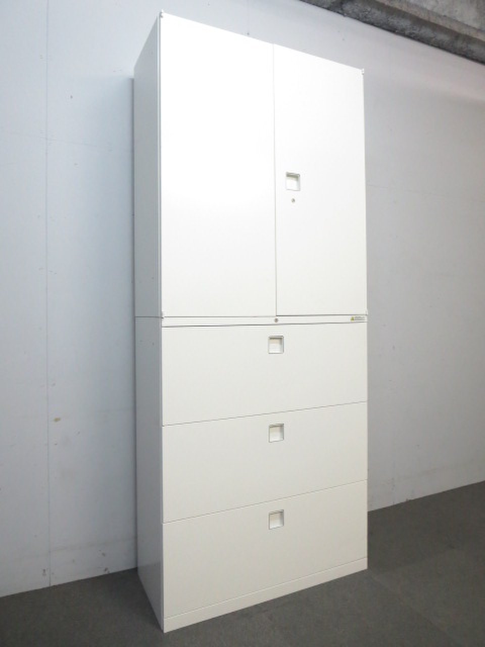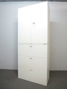 【上下書庫セット】【両開き(上)×3段ラテラル(下)】【オカムラ】【レクトライン】【ホワイト】【4台】