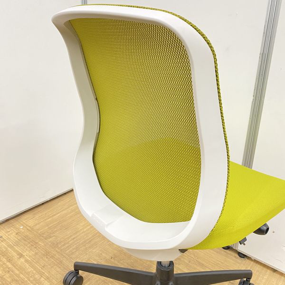背もたれがメッシュのチェアは、構造上、外枠となるフレームが存在します。小さめのメッシュチェアは背中にフレームが当たったり、メッシュの弾性を十分に得ることができないので、一般にメッシュチェアは大型になりがちです。しかし、シロッコチェアは、フレームを横ではなく縦方向に厚くしたバーチカルフレームで強度を確保しており、 小さめのボディでありながらメッシュ面が広く作られています。