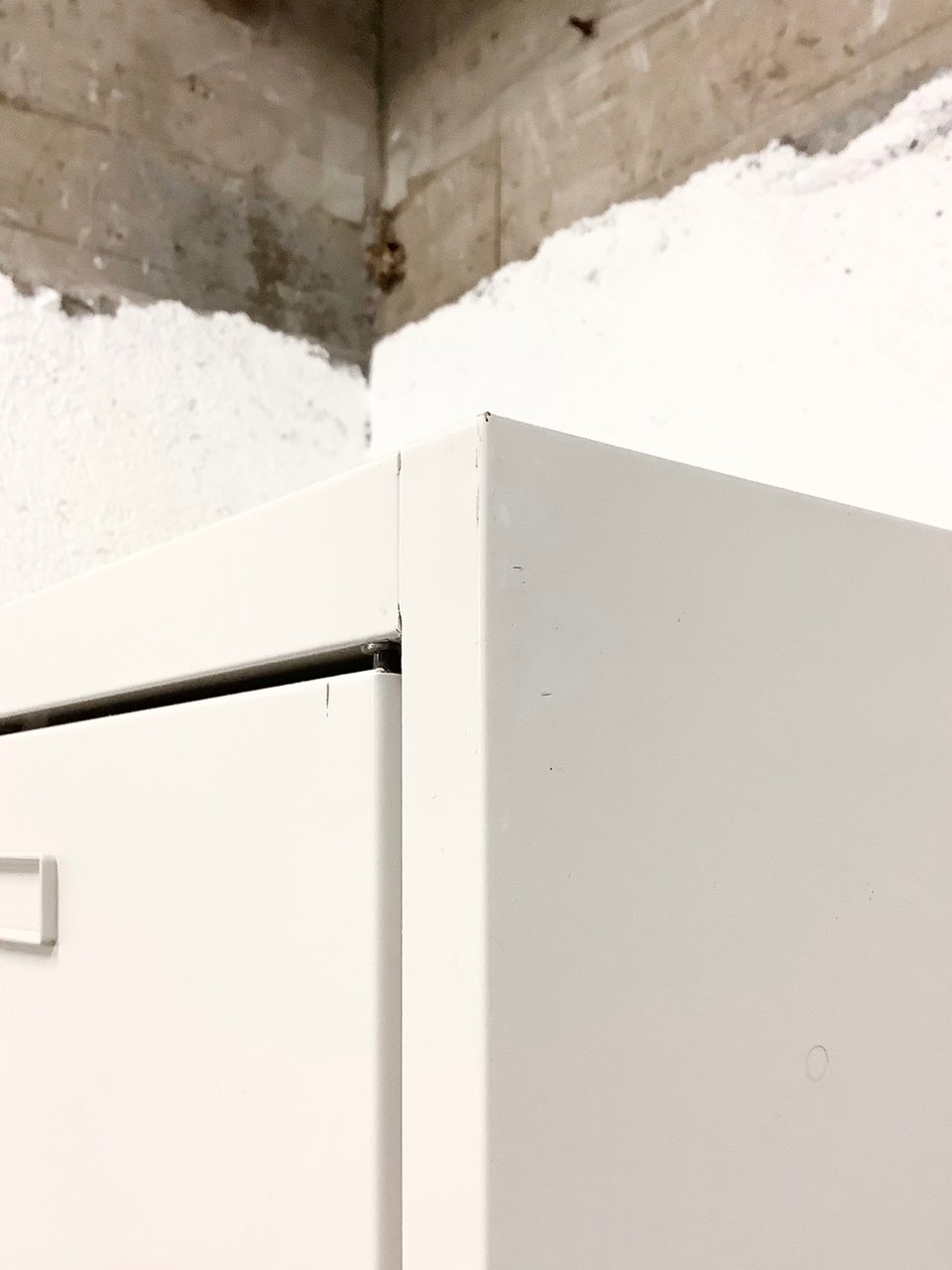 - かなり強い黄ばみ・変色が商品全体にある。(例、天板、正面、背部、サイド部分にある。)
