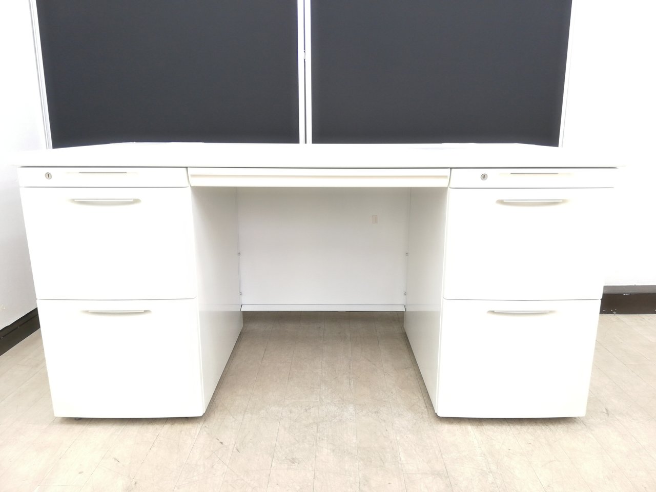【ロット入荷】人気のホワイト両袖デスク入荷!配線機能や収納にこだわった両袖机!中古 オフィス家具 役員用デスク コロナ対策 レイアウト変更