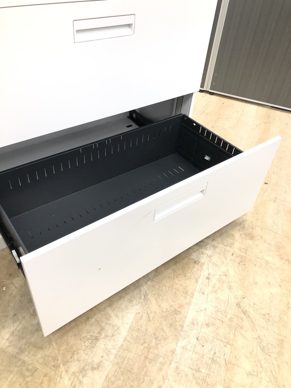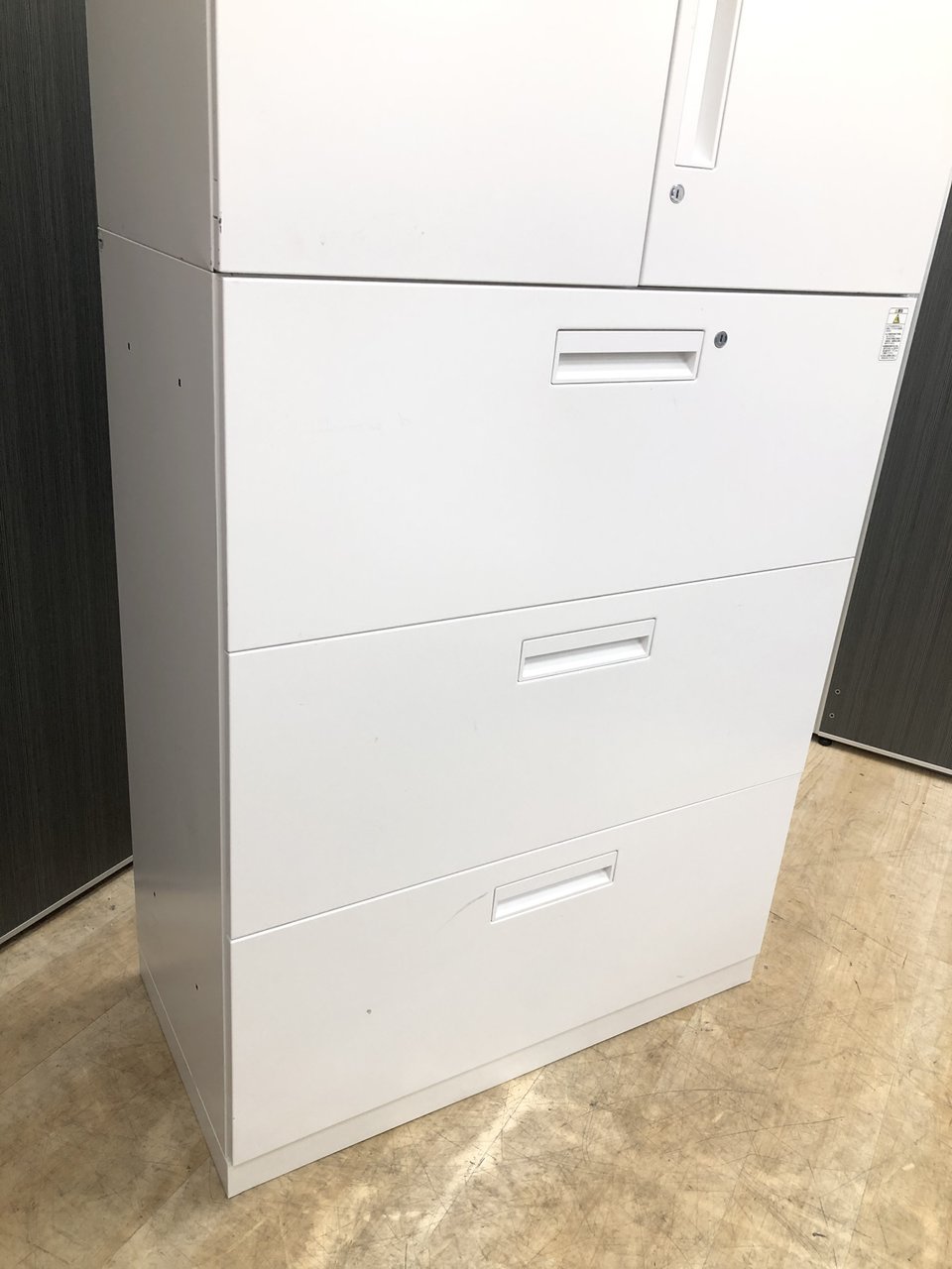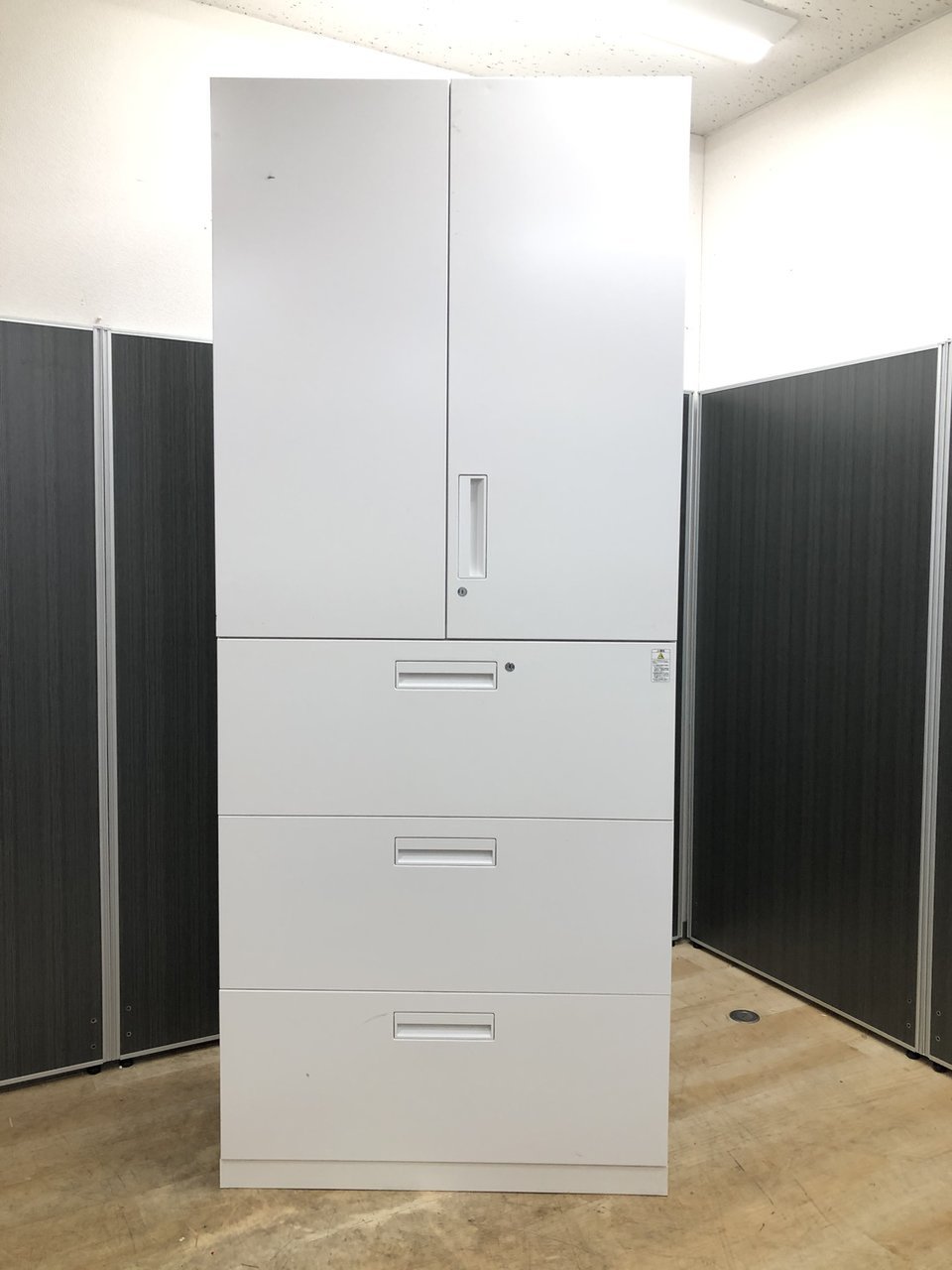 - 一部不具合ありそ引出の開閉不可、施錠不可、棚板無しといったの書庫の本来の効用を果たすための機能以外の一部が使用不可(例、扉、引出の開閉がしづらいなどがある。 )