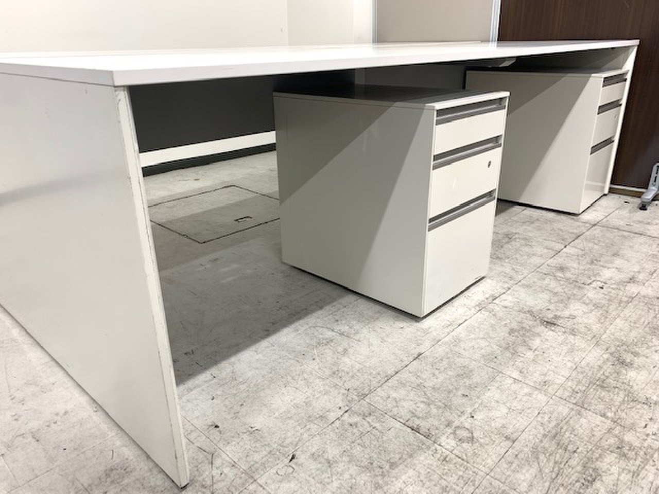 フリーアドレスデスクとワゴン4台、チェア4脚セットになります。