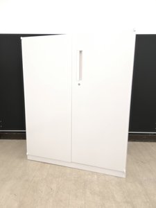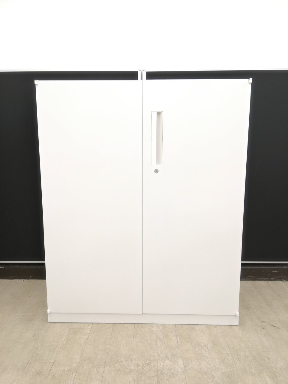 腰高サイズの両開き書庫入荷!取っ手が上部にあるので開けやすい構造です。|ホワイト|書棚 本棚 書類整理