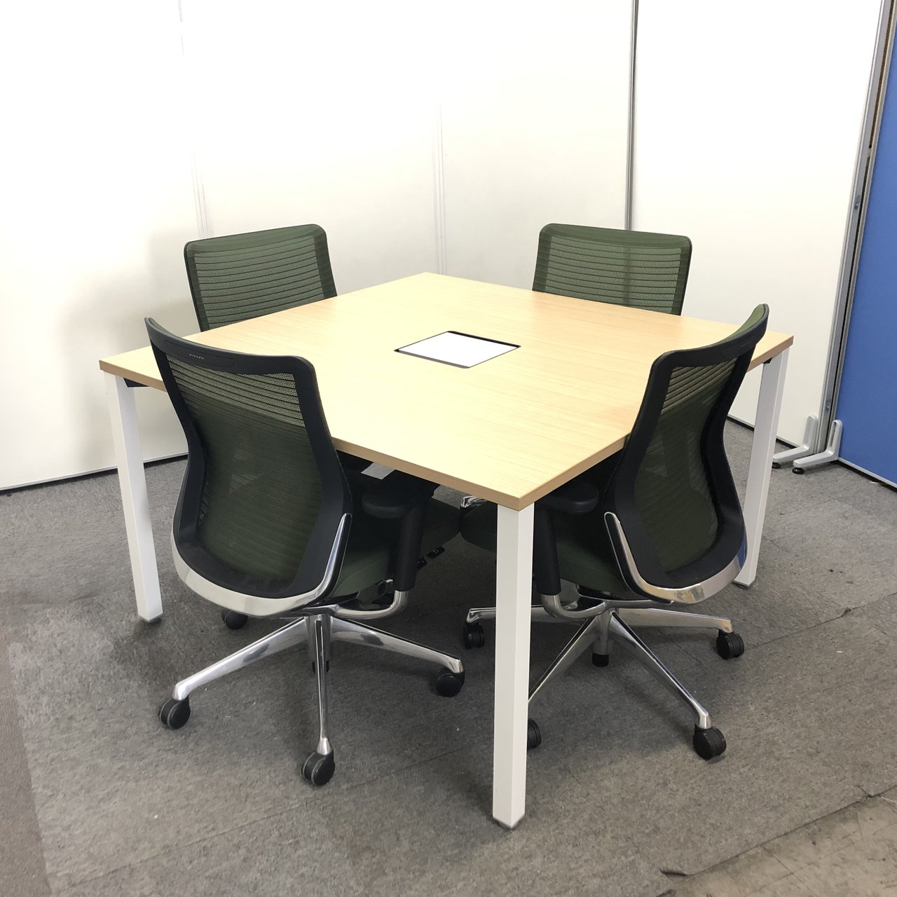 イトーキ製のナチュラルカラーのフリーアドレスデスク+高級チェアオカムラのコーラル4脚セット!