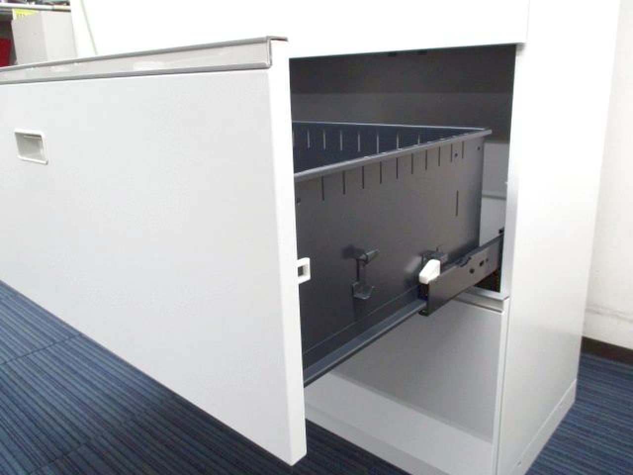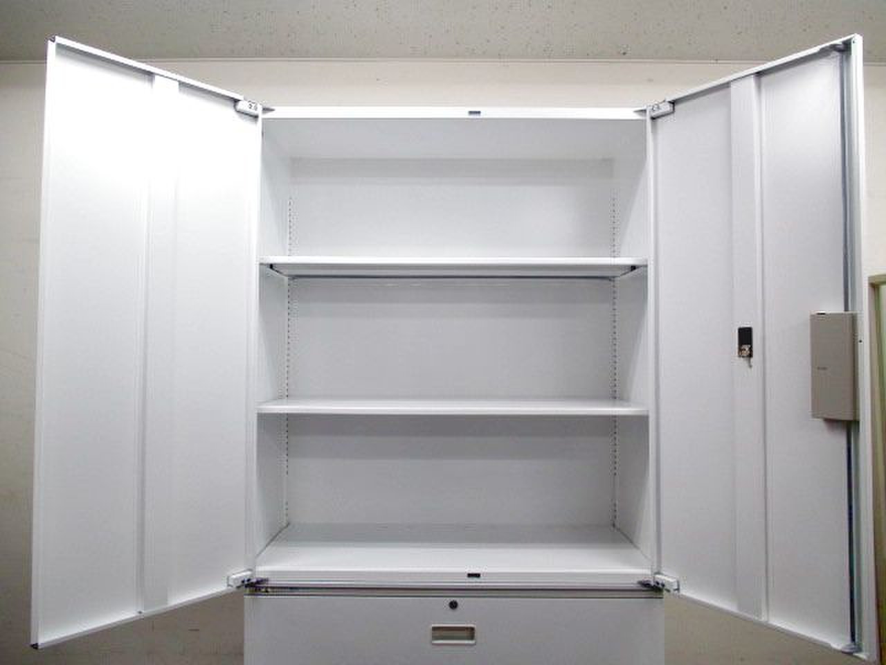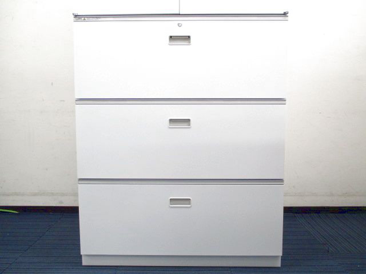 3段ラテラル×両開きの定番キャビネットです。下置きは引き出しタイプになっておりA4ファイル等をすべての段に収納できます- 足立・葛飾店