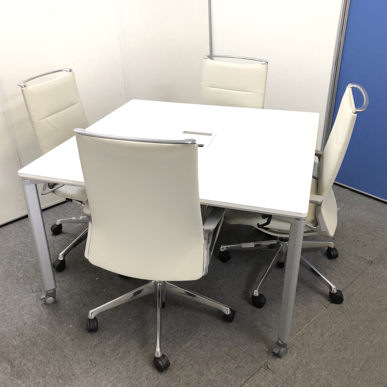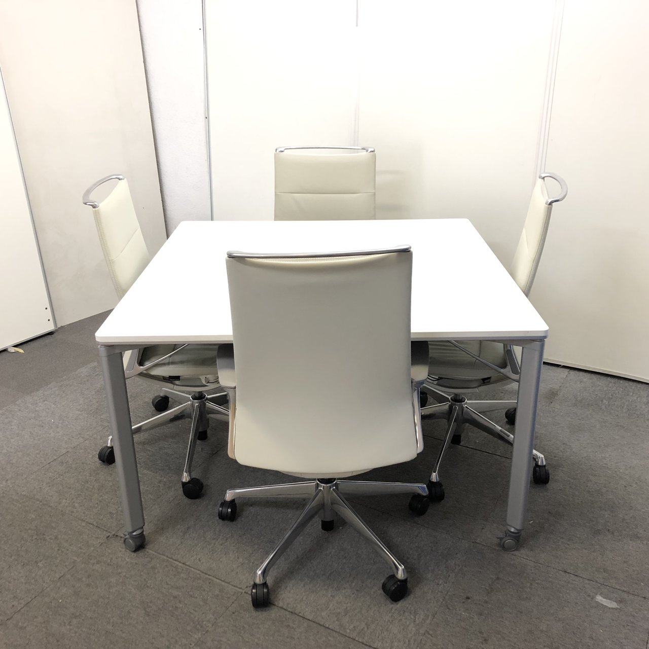 コクヨ製のホワイトカラーのフリーアドレスデスク+高級チェアオカムラのモード4脚セット!