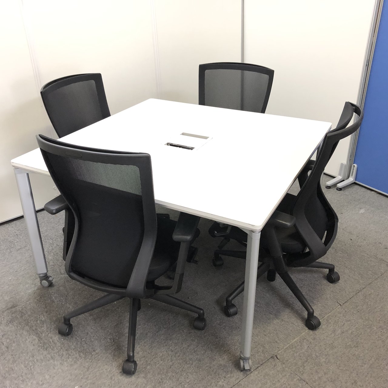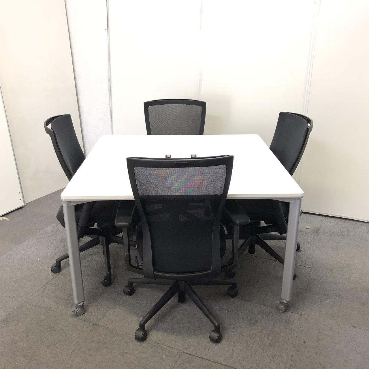 コクヨ製のホワイトカラーのフリーアドレスデスク+ファシスのT500シリーズ4脚セット!