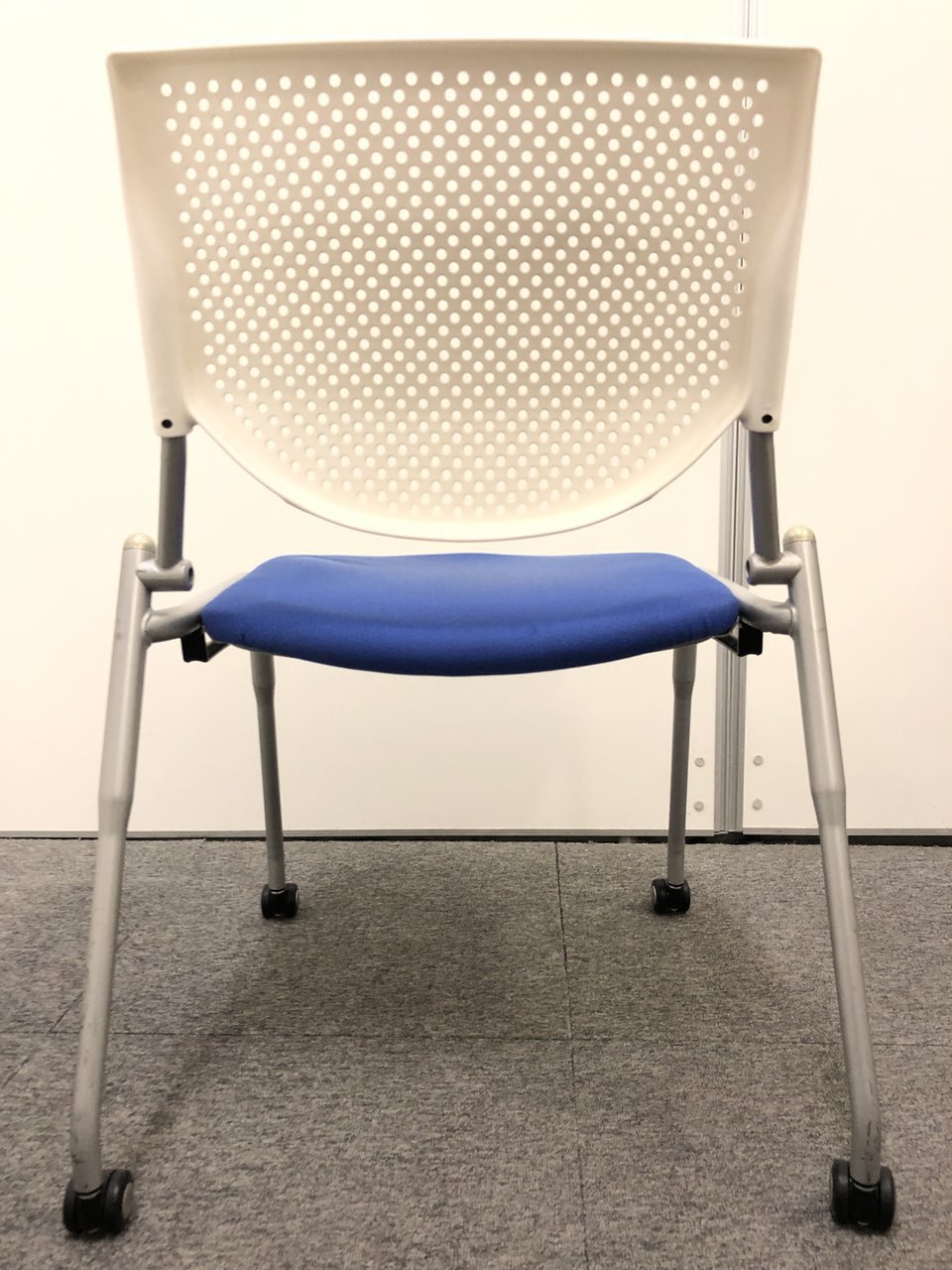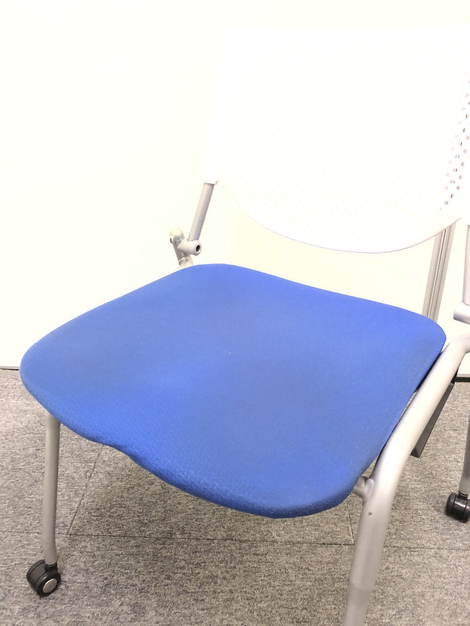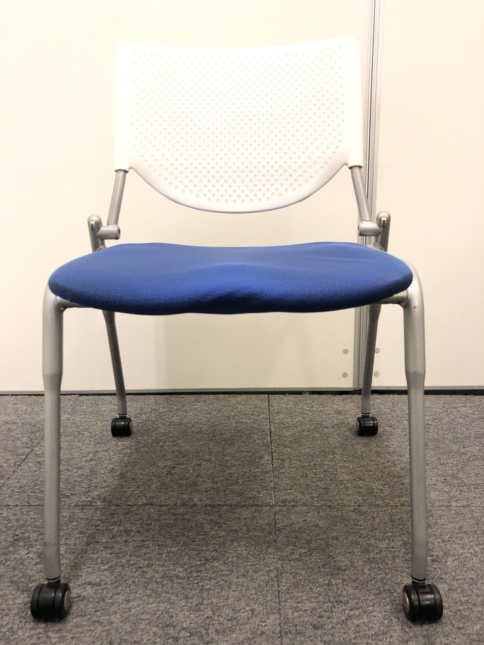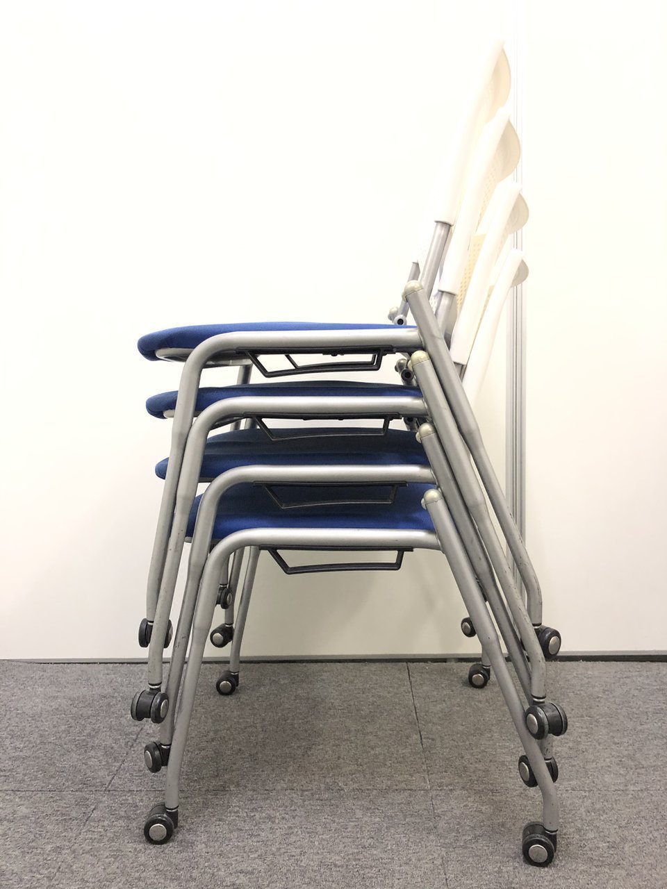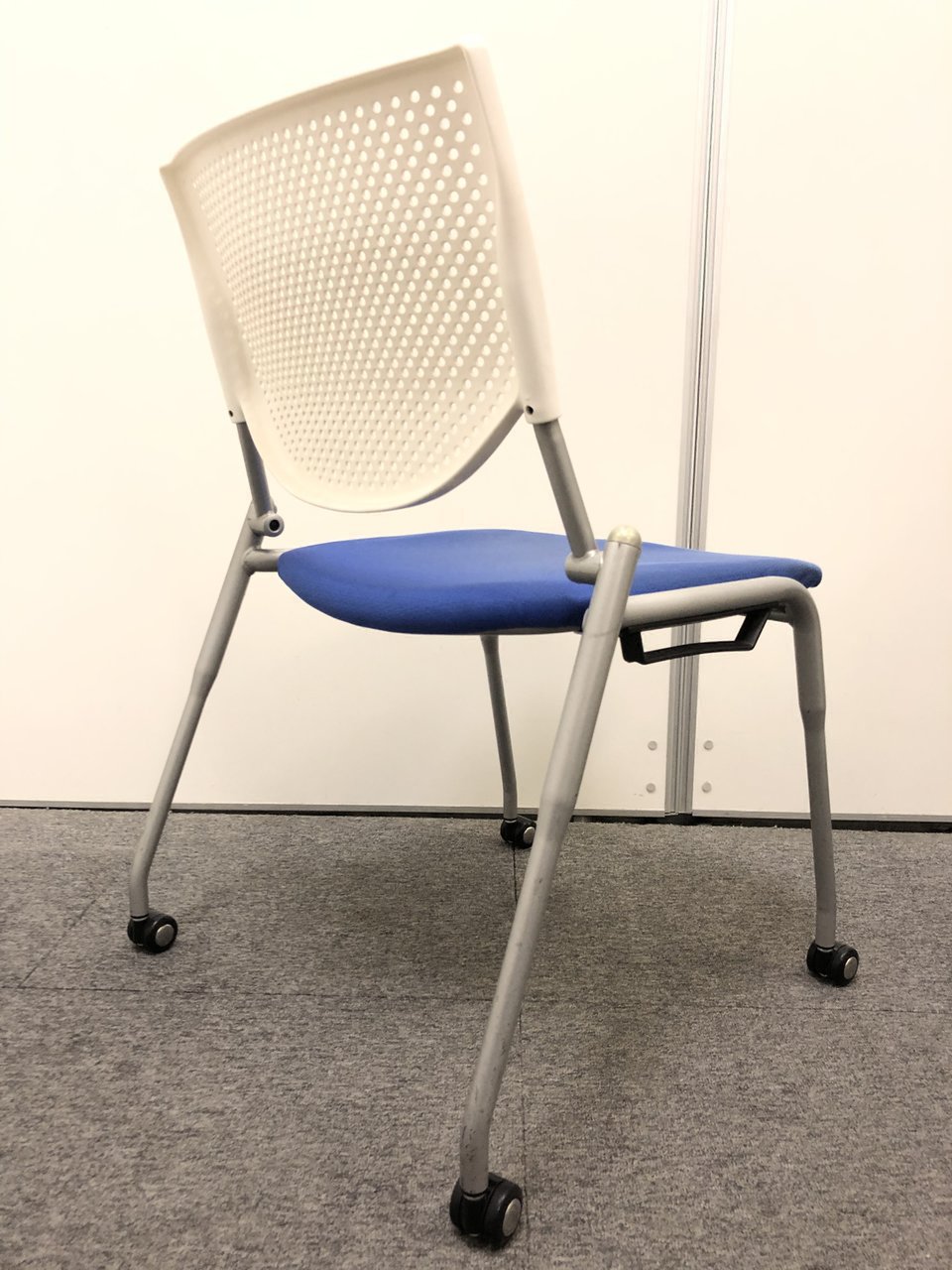 【4脚セット】キャスター付きスタッキングチェア オカムラ okamura プロスタック ブルー 背もたれ ホワイト- 大阪梅田本店