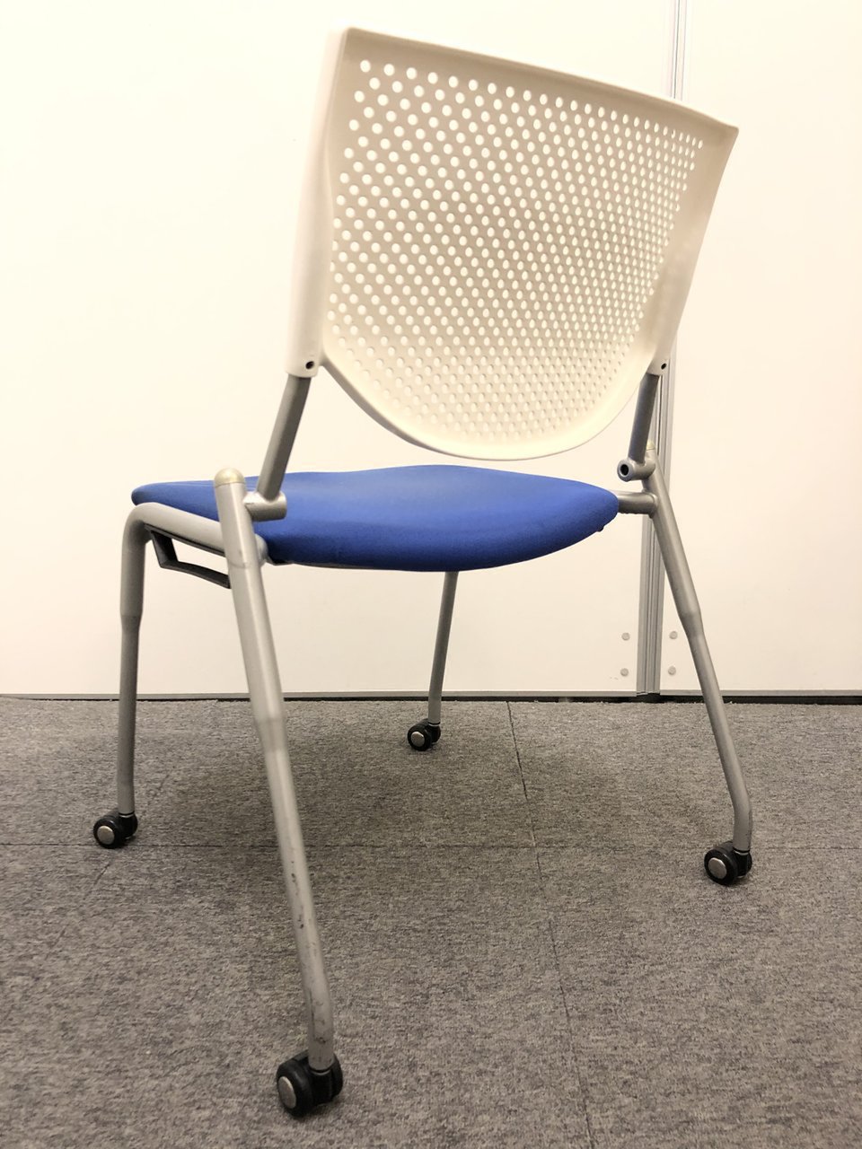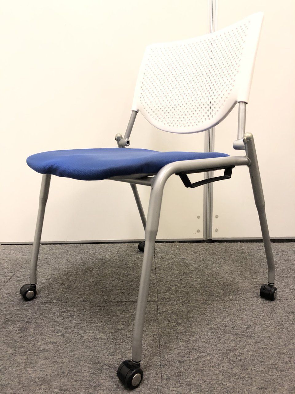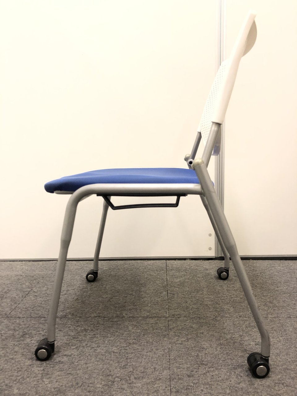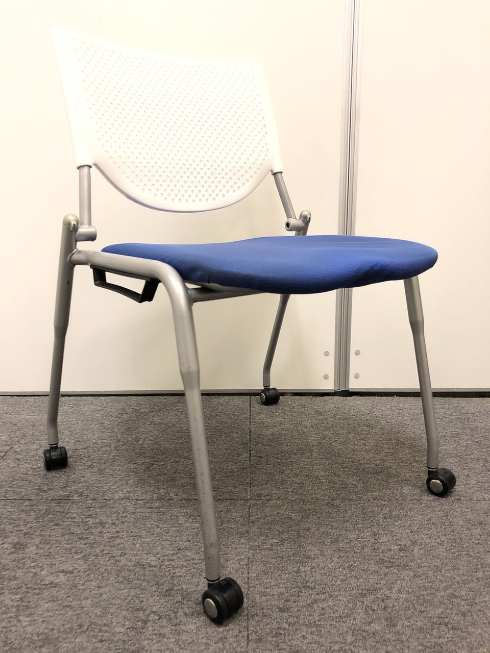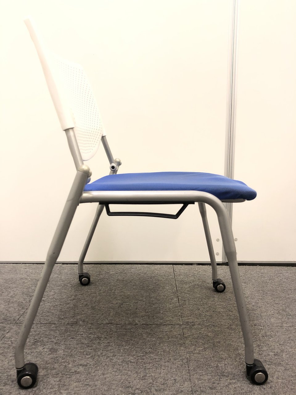 【4脚セット】キャスター付きスタッキングチェア オカムラ okamura プロスタック ブルー 背もたれ ホワイト- 大阪梅田本店