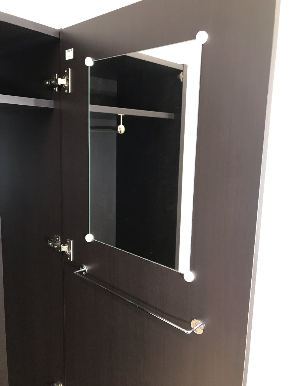 - 完備鏡、ネクタイ掛け、傘立て、網棚、フック等が全て完備されている。