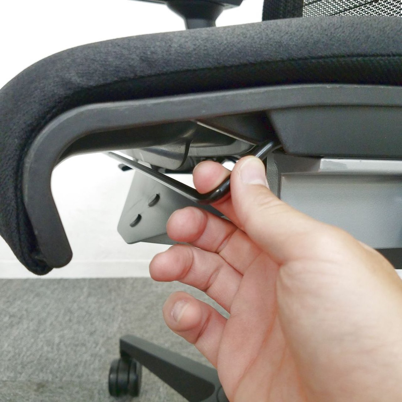 快適な座り心地に不可欠な調節機能である、上下昇降、座面の奥行き調整、リクライニングなどを備えており、操作もわかりやすく好評です。 特に、座面の奥行きは、座面下の左右に通った細いバーで調整でき、座ったままで軽やかに滑るように調整が可能です。 価格面では、新品では高めですが、中古は流通も多く、定価の3割前後の価格で高級チェアの座り心地を手に入れることができます!