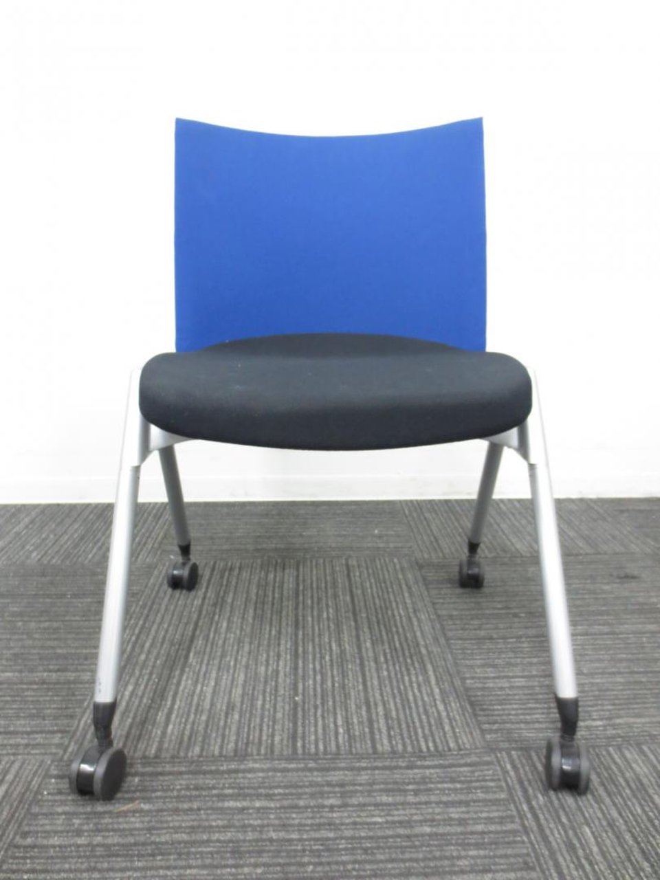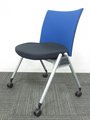 【適度なクッションが心地よい!】■ウチダ スタッキングチェア キャスター付 ブルー- 川崎店