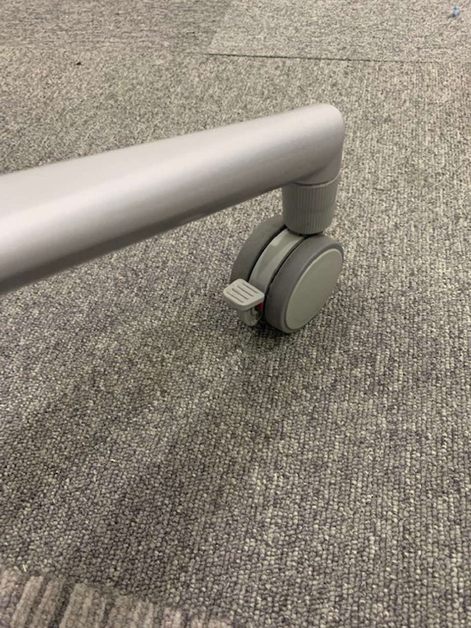 - 一部不具合あり天板歪み、アジャスター無し、キャスター使用不可ようなそのテーブルの本来の効用を果たすための機能以外の一部が使用不可な状態。(例、キャスターロッ ク機能使用不可、棚板無し等がある。)