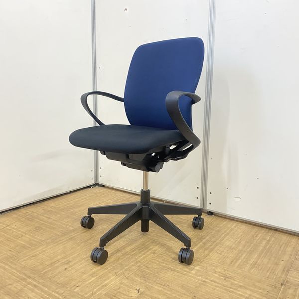 【迷ったらこれ!】イトーキ/フルゴ(fulgo)/座面:ブラック×背面:ネイビーブルー◆ループ肘付