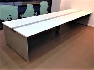 12名様推奨サイズ 足元すっきり 大型フリーテーブル 清潔感あるホワイト天板 人気のオカムラデスク W7200 D1400- 名古屋千種店
