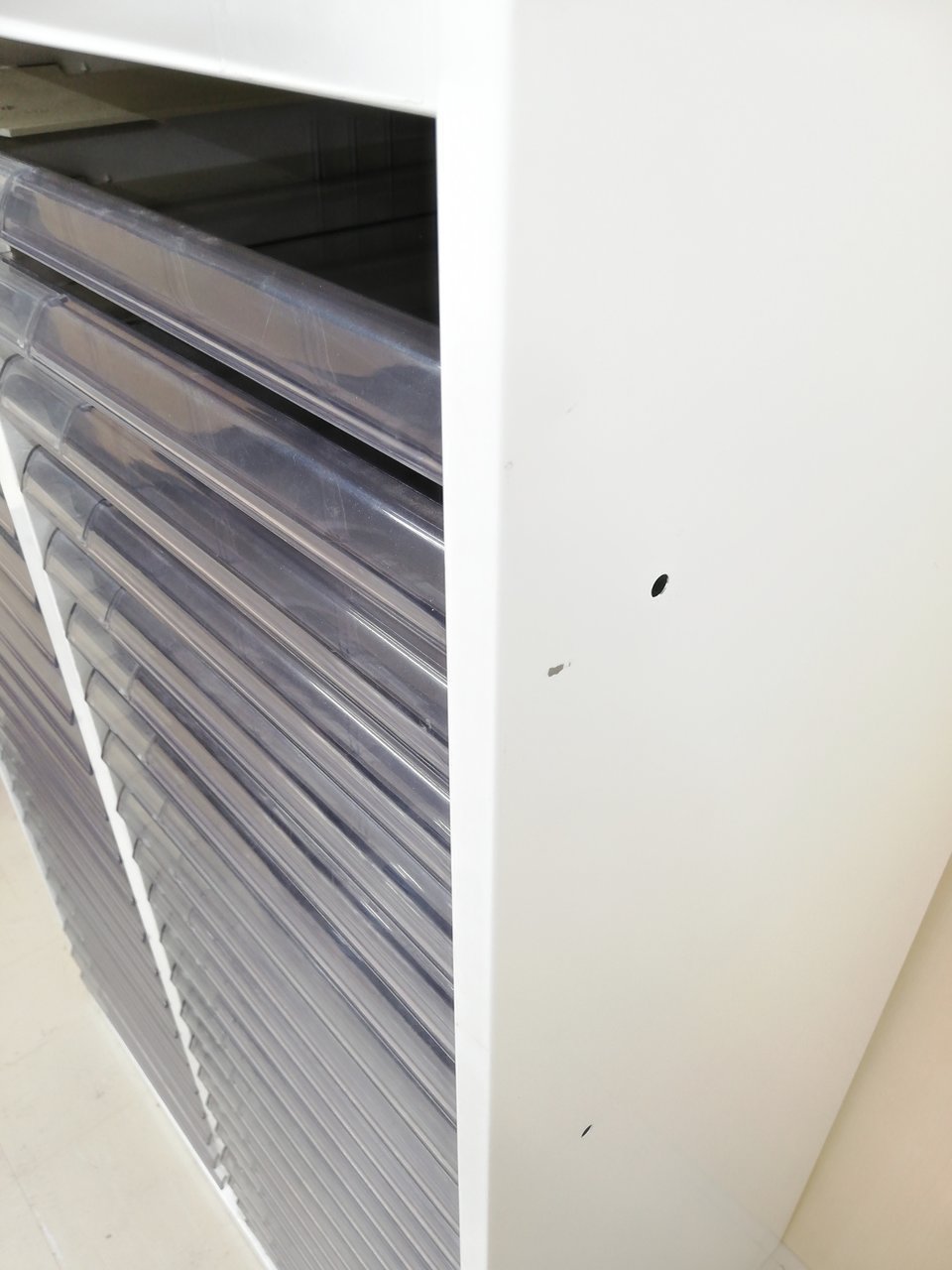 - 一部不具合ありそ引出の開閉不可、施錠不可、棚板無しといったの書庫の本来の効用を果たすための機能以外の一部が使用不可(例、扉、引出の開閉がしづらいなどがある。 )