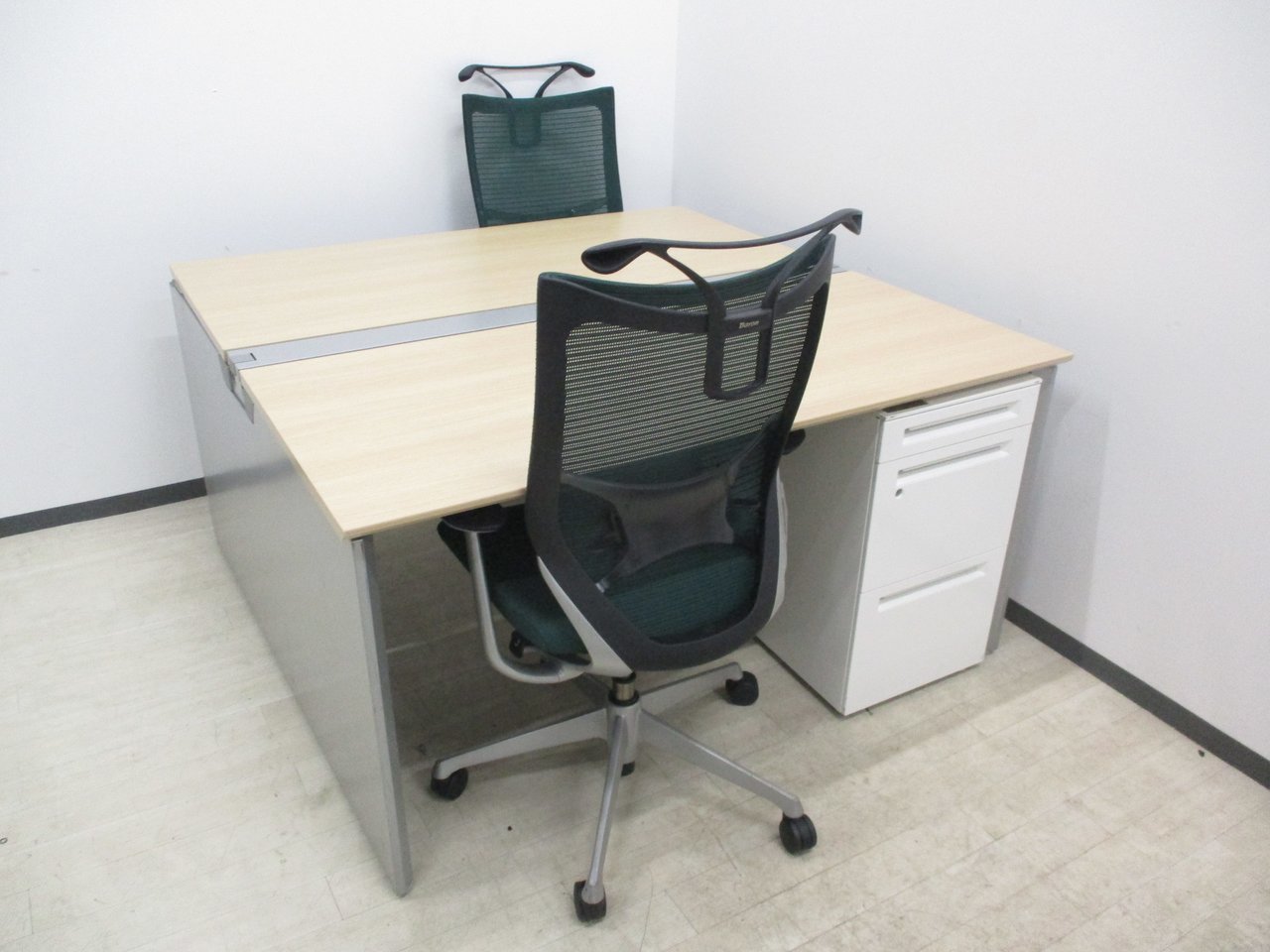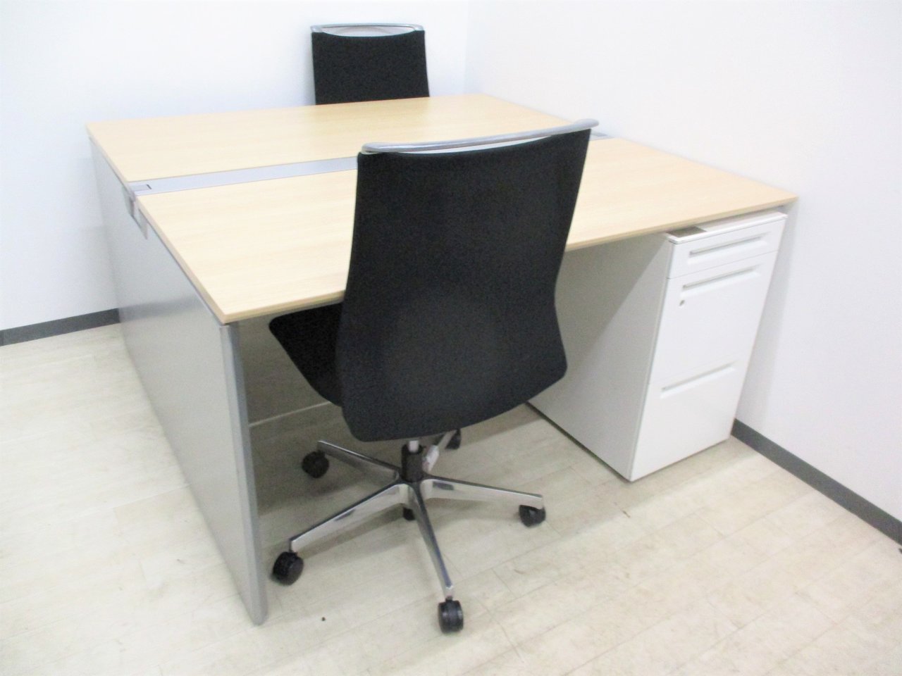 お得なワゴンセット!2名用におすすめなフリーアドレスタイプのデスク!オカムラ/プロユニットフリーウェイ/ナチュラル- つくば店