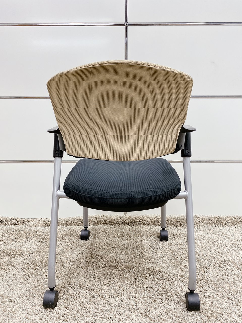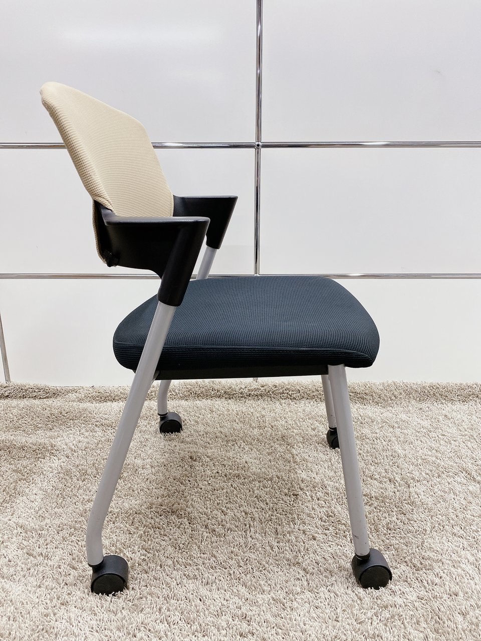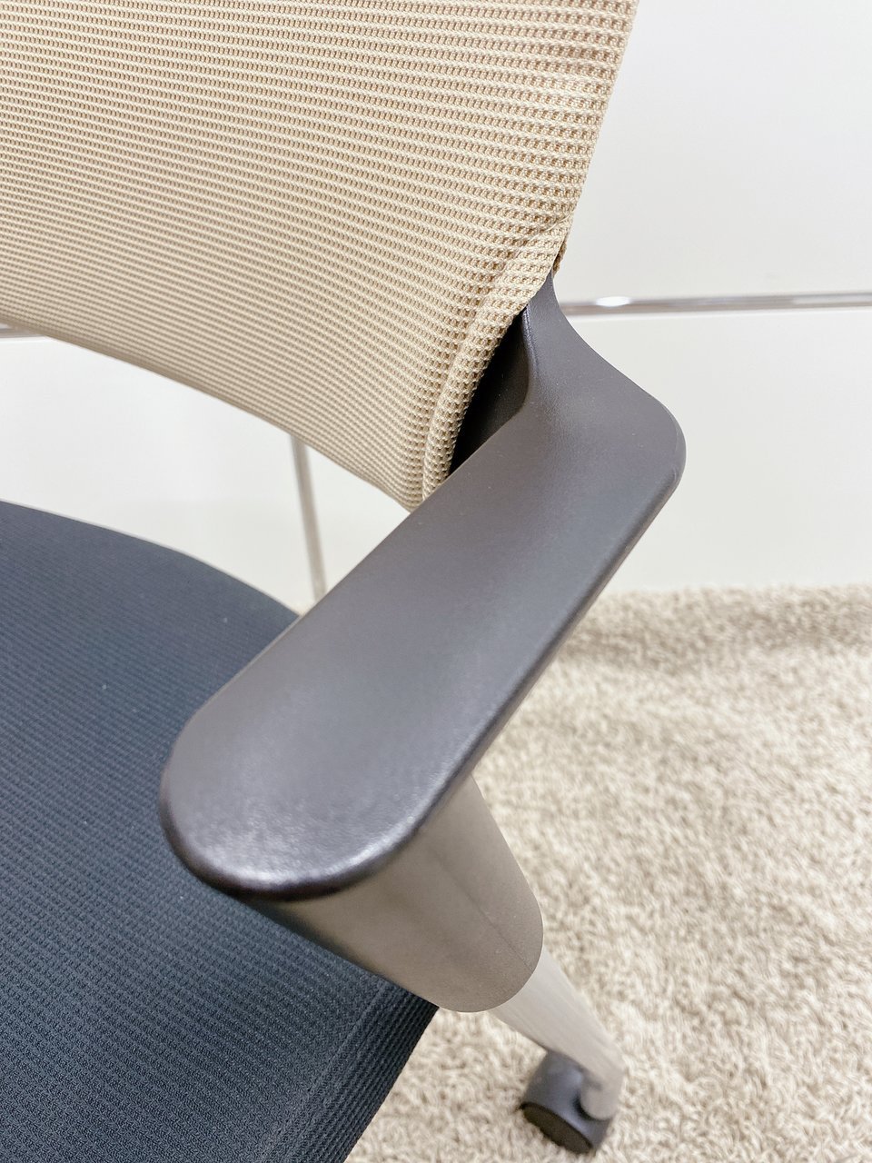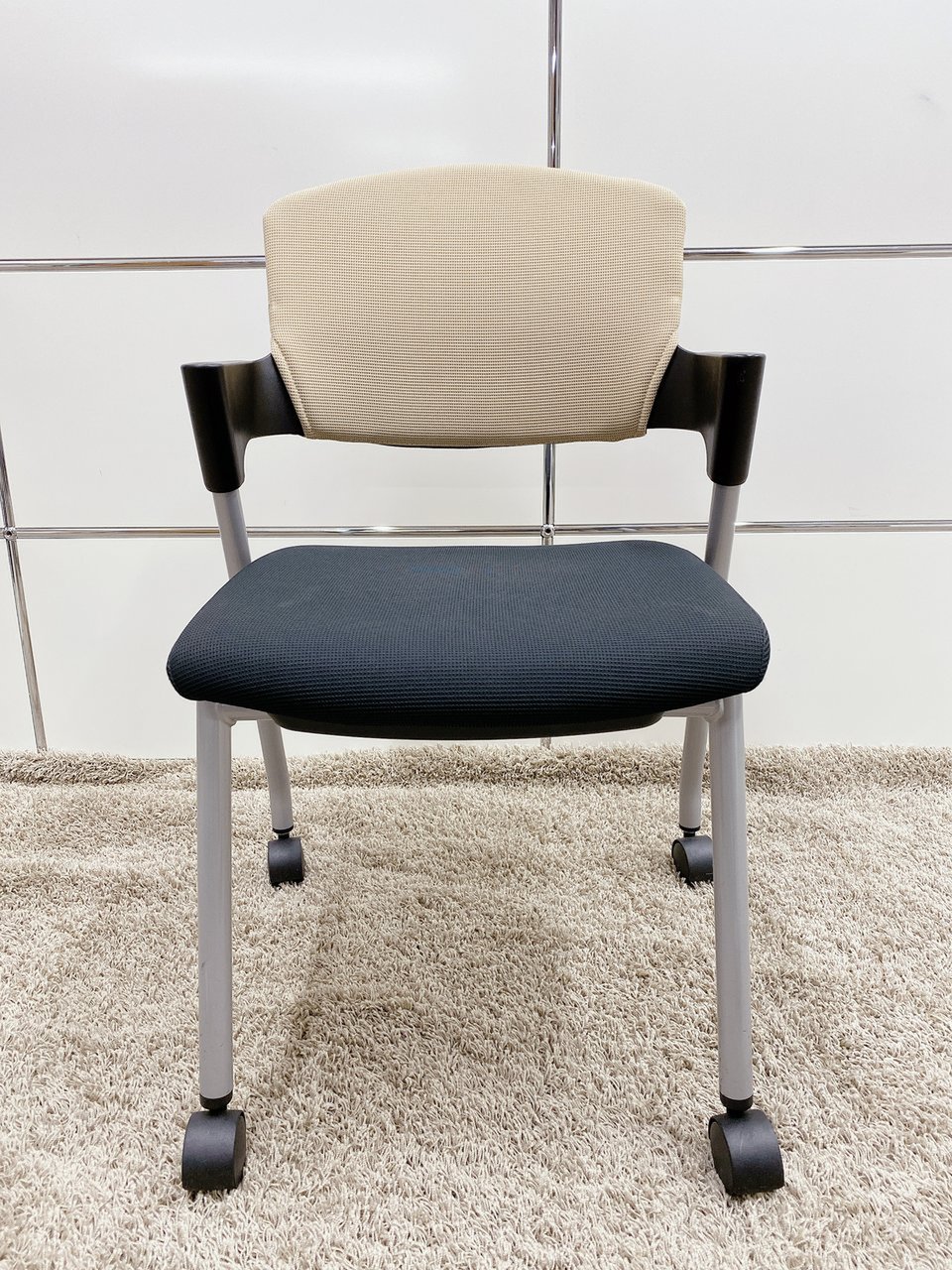 背もたれがベージュ色、座面がブラックのキャスター付きタイプとなります。