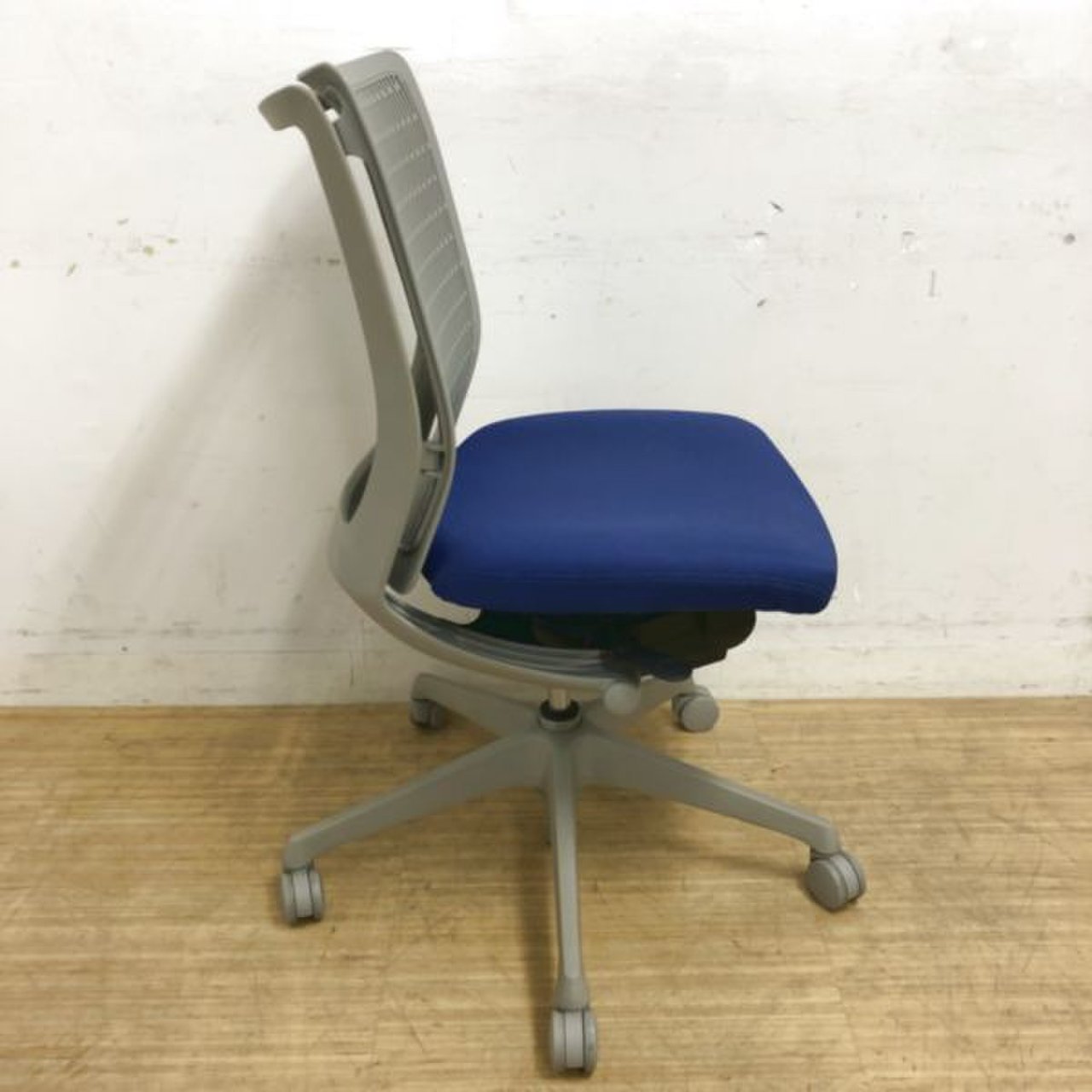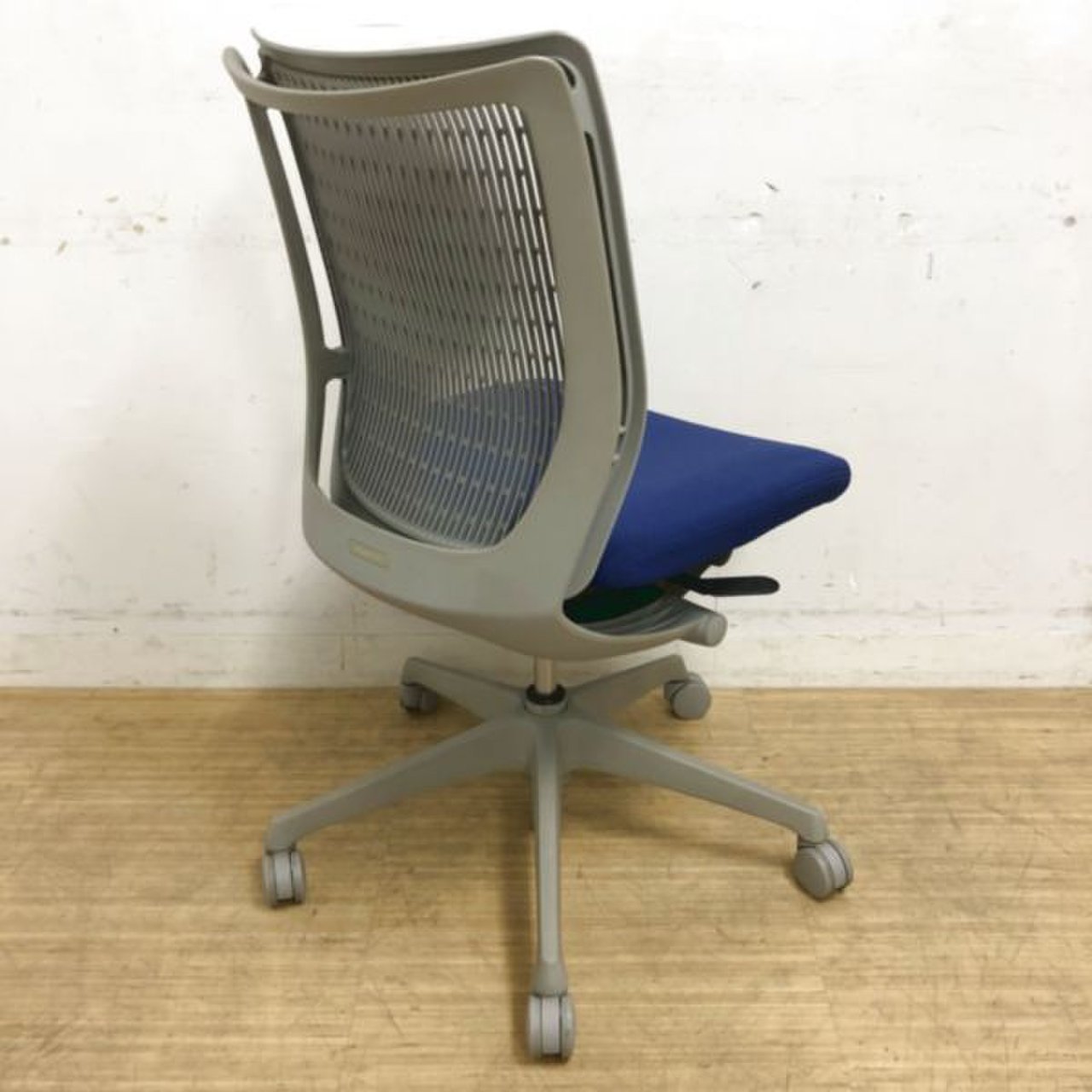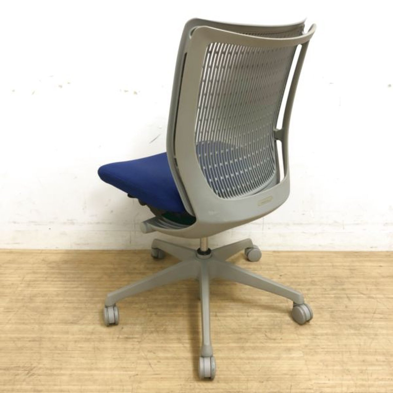 【国内メーカー】オカムラ製 ヴィスコンテチェア ブルー×グレーカラー 肘無しローバック【背面メッシュ】【京都・滋賀】