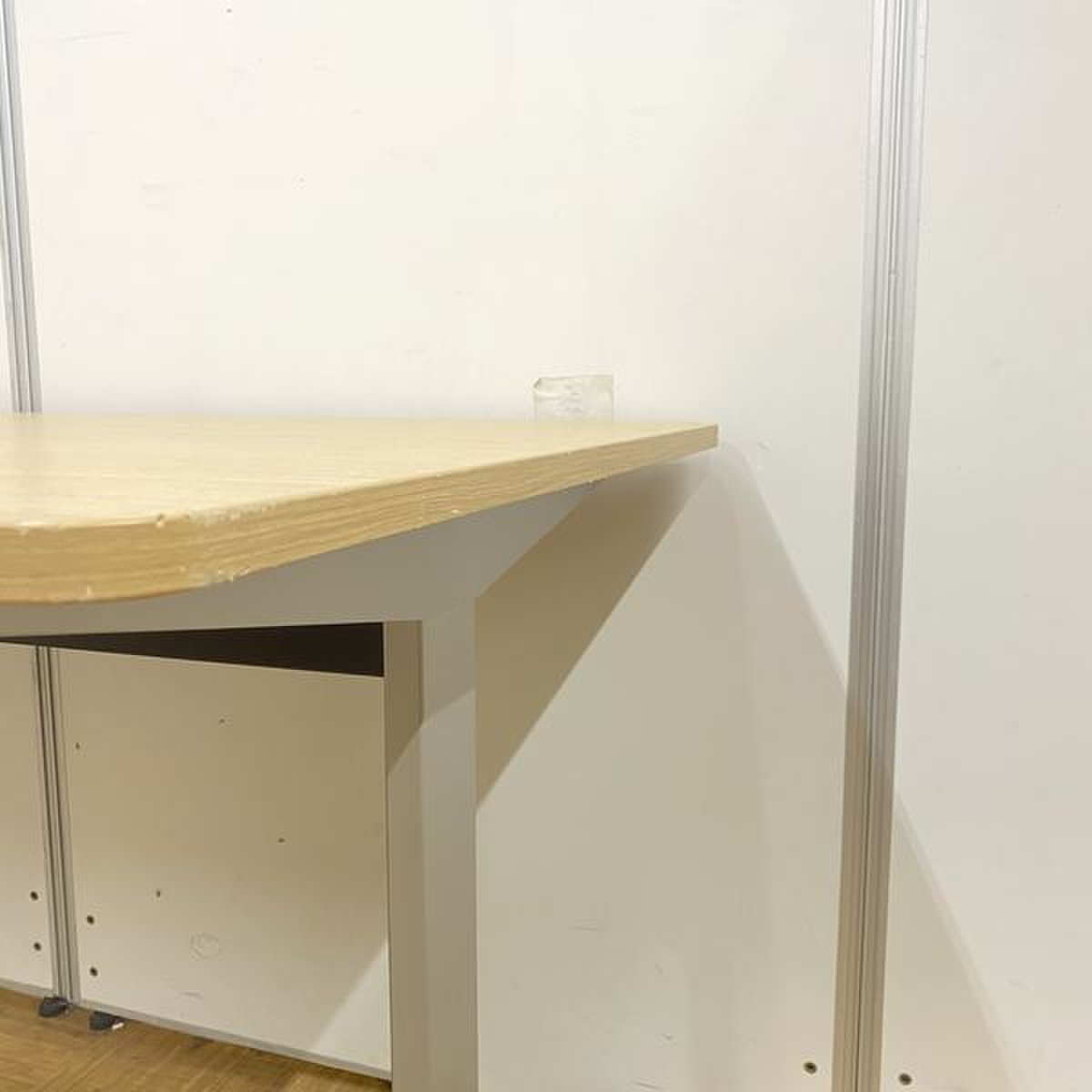 - 一部不具合あり天板歪み、アジャスター無し、キャスター使用不可ようなそのテーブルの本来の効用を果たすための機能以外の一部が使用不可な状態。(例、キャスターロッ ク機能使用不可、棚板無し等がある。)
