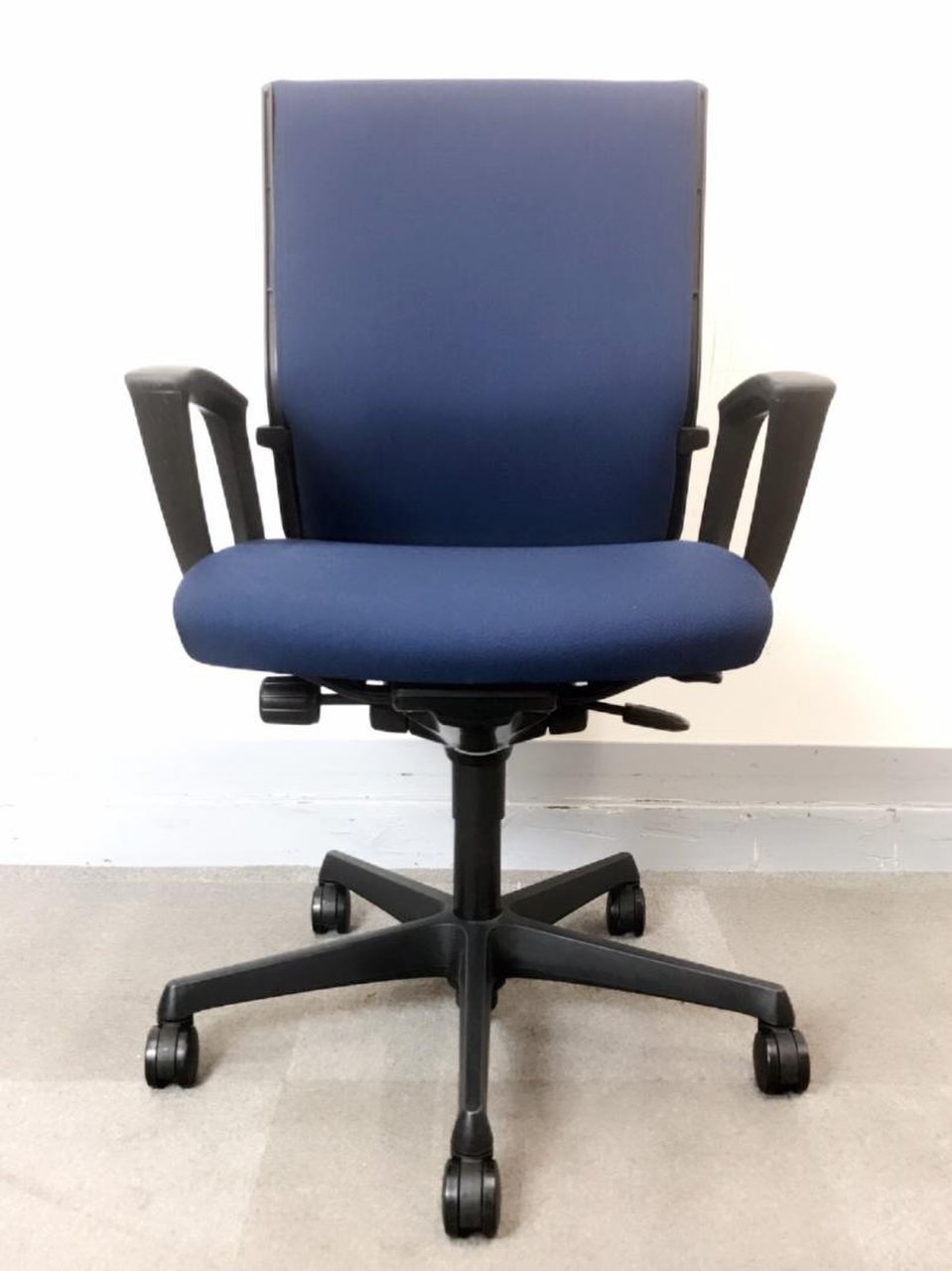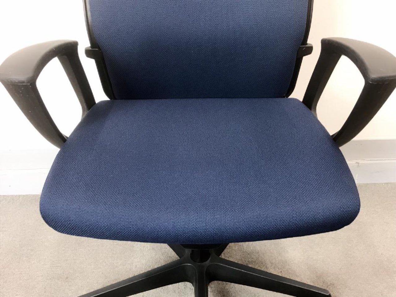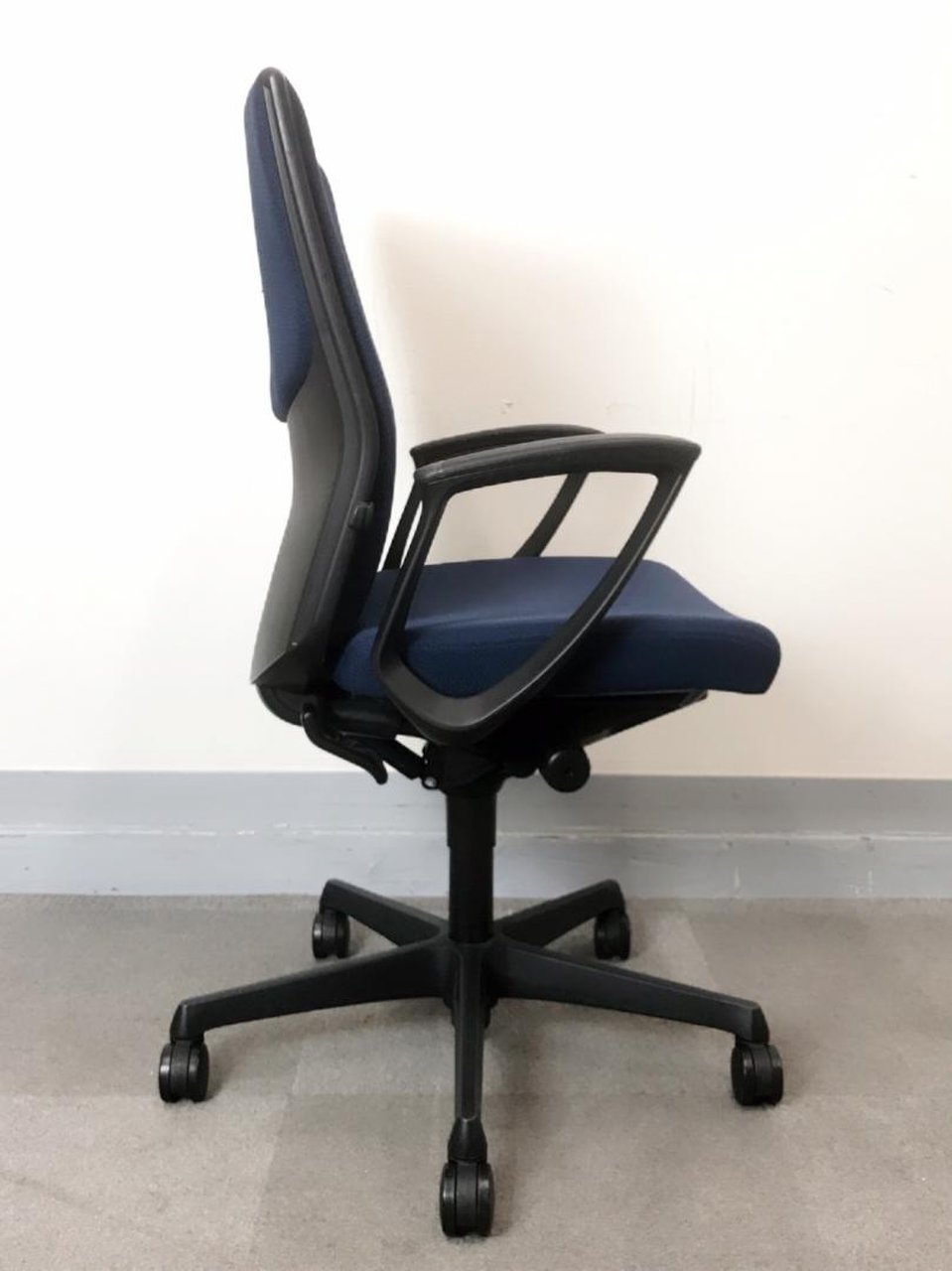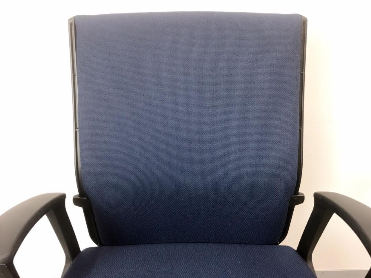 ロットで入荷しました。肘付き・ハイバックチェア。ネイビーブルーのため、色を合わせやすいのがメリットです。