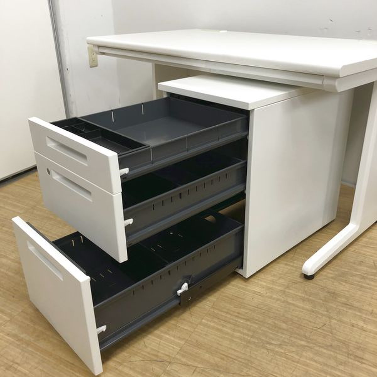 数量限定!未使用品デスク+中古ワゴンのセット デスクは倉庫で段ボール梱包状態で保管中- 名古屋千種店