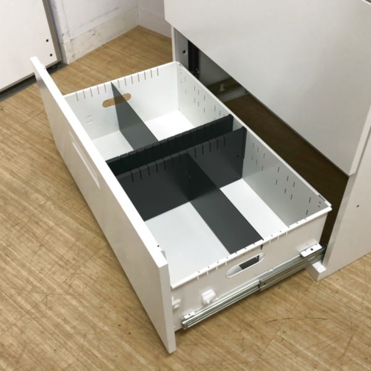 - 一部不具合ありそ引出の開閉不可、施錠不可、棚板無しといったの書庫の本来の効用を果たすための機能以外の一部が使用不可(例、扉、引出の開閉がしづらいなどがある。 )
