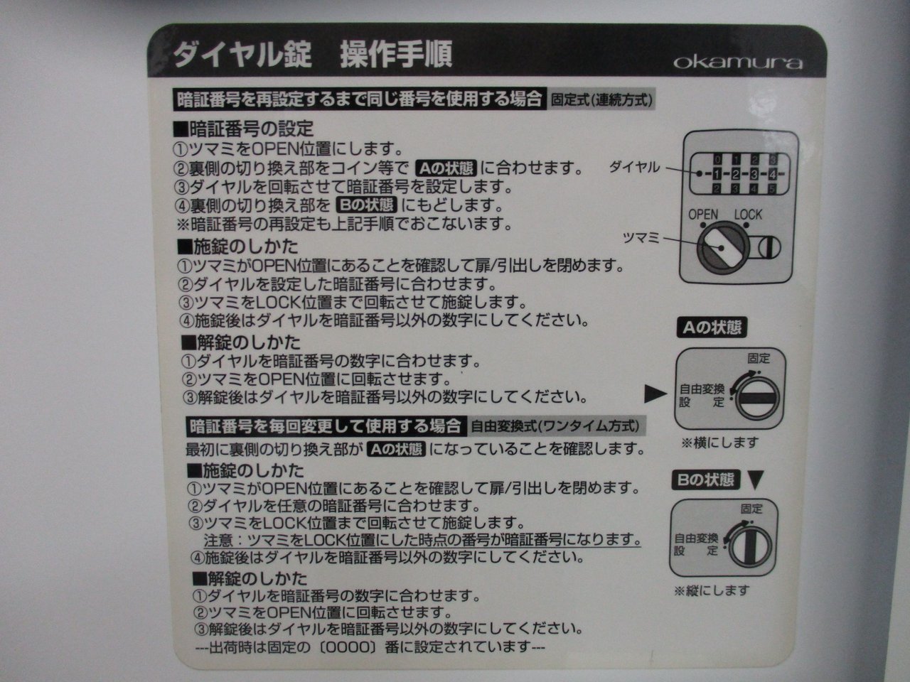 番号不明になった場合は、『0000』~『9999』まで1つ1つお確かめ頂く事になりますので、番号管理が重要となります。