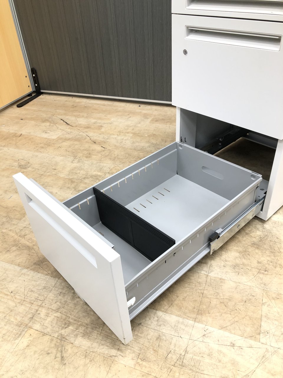- 一部不具合ありその脇机・ワゴンの本来の効用を果たすための機能以外の一部が使用不可な状態。(例、引出が開閉しづらい、 キャスターロック機能使用不可、ラッチ不良 等がある。)