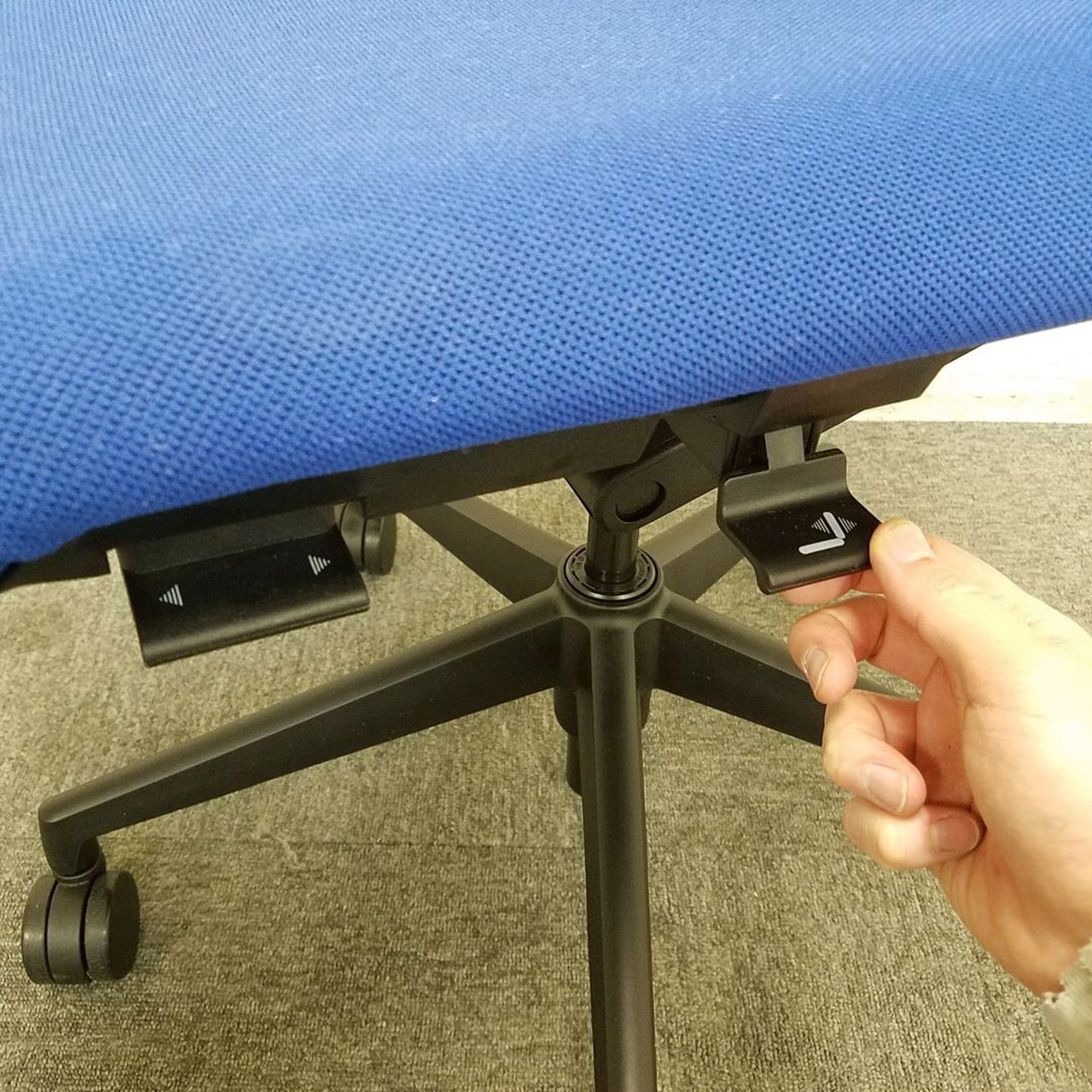 また、個人的にオススメなのは『フルアジャスタブル肘』というアーム部分が斜め前に伸びていくタイプの肘置きを搭載したモデルです。高さを上げれば上げるほどパッドが前方に迫り出していくので、デスクワークの際にちょうど肘を置きたい場所に肘置きがきます。これがとても快適なので、ぜひ一度お試しいただきたいです!*エルフィチェアの肘パーツはフルアジャスタブル肘の他に、固定肘、アジャスタブル肘などがあります。