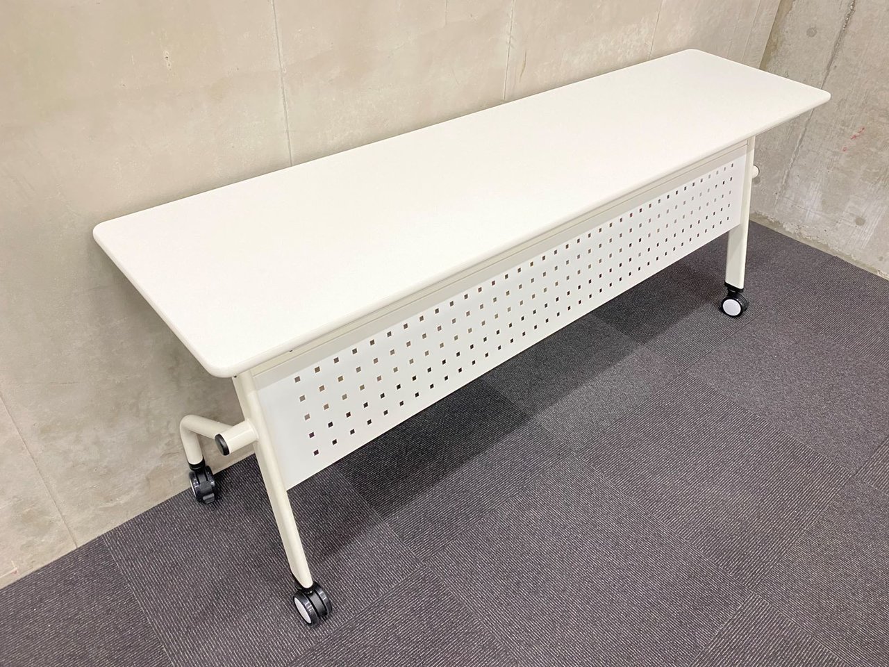 新品/会議用テーブル/折りたためる/フラップ式/キャスター付/ホワイト