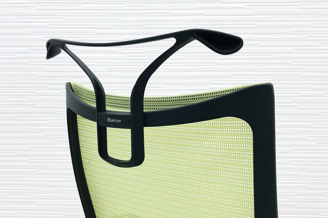 発売当時、既に人気を博していたオカムラの高級チェア、コンテッサから手元で座高調整ができるスマートオペレーション機能を取り除くなどしてリーズナブルにしたのがバロンです。その際に少しだけコンパクト化されました。そのことが、日本人の体格、日本のオフィス、家庭環境に適し、国内で多くのシェアを獲得する要因の一つになったのではないかと思います。