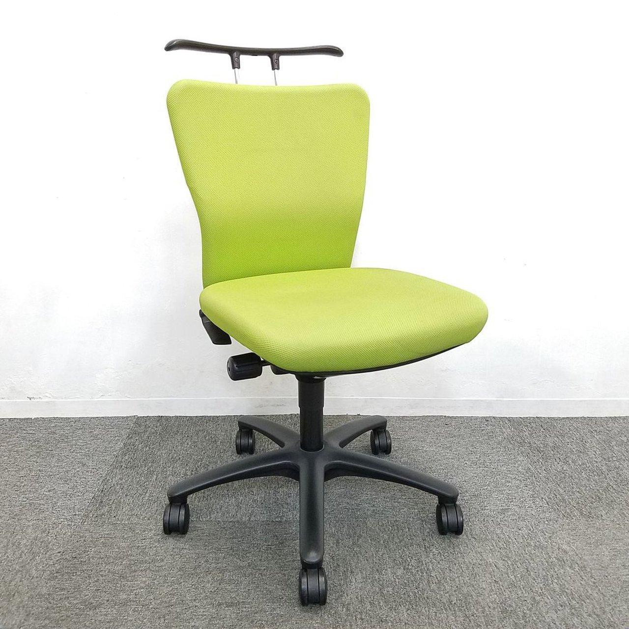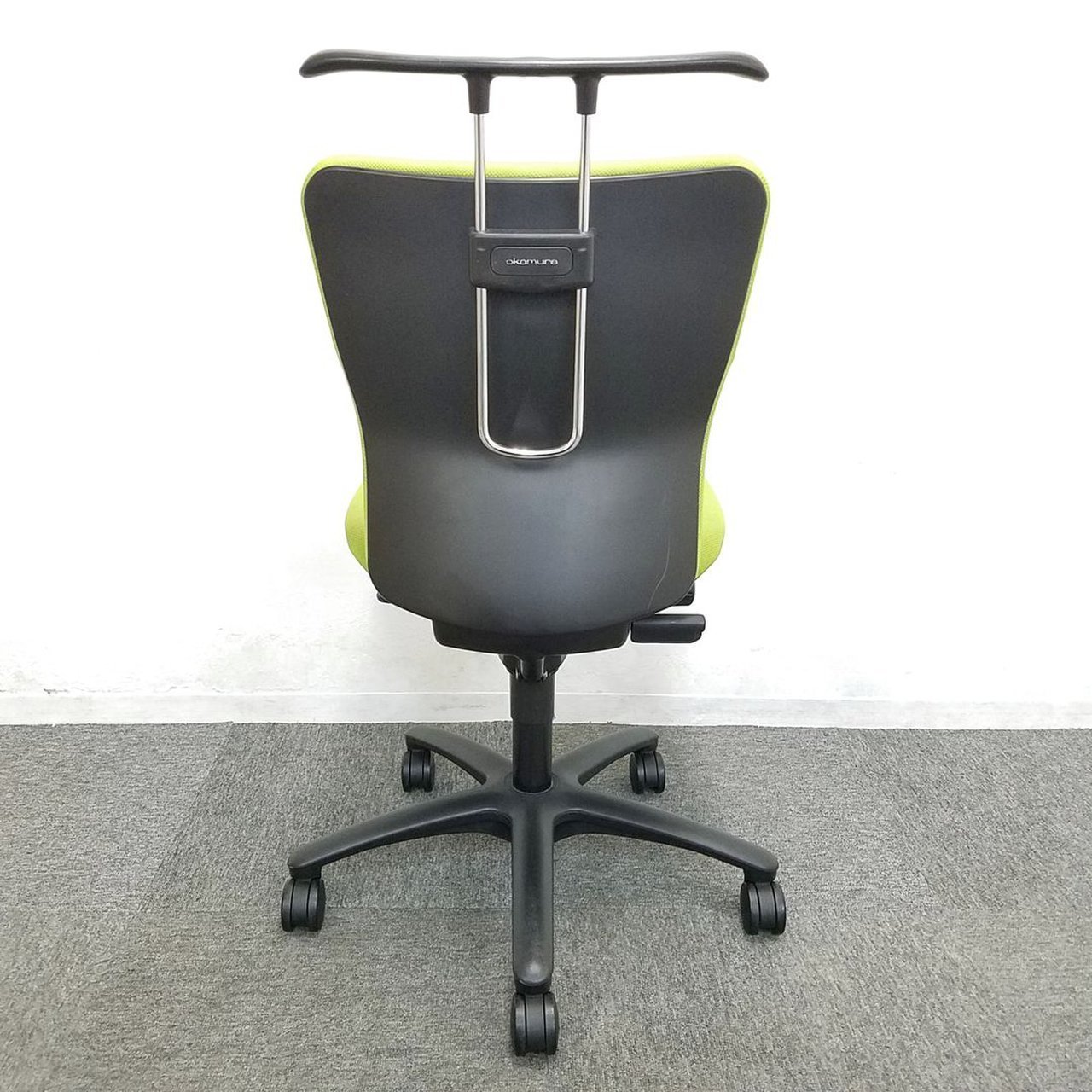 【定番商品】オカムラ製 カロッツァチェア グリーン×ブラックカラー 肘無しローバック 【在庫2脚限り】【国内メーカー】