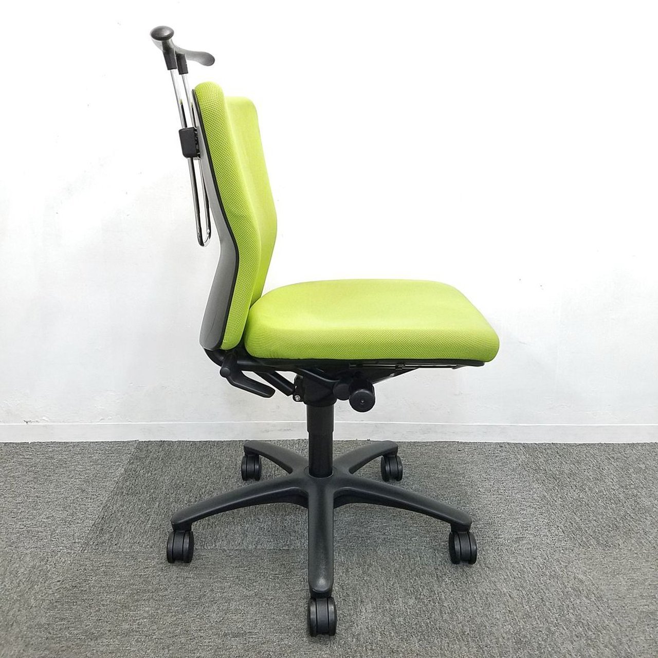 人間工学を基に設計されたロークラスチェア!ライトグリーンカラーでオフィスも明るくなります!■オカムラ■コートハンガー■リクライニングロック【値下品】