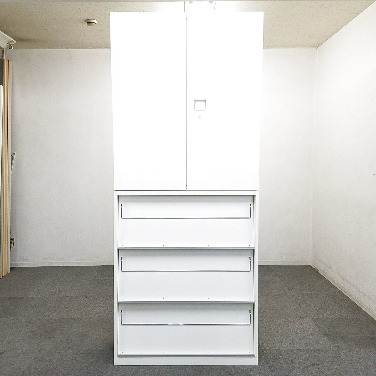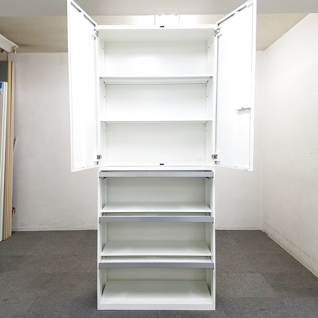 【上下書庫セット】【両開き(上)×3段ラテラル(下)】【オカムラ】【レクトライン】【ホワイト】【4台】