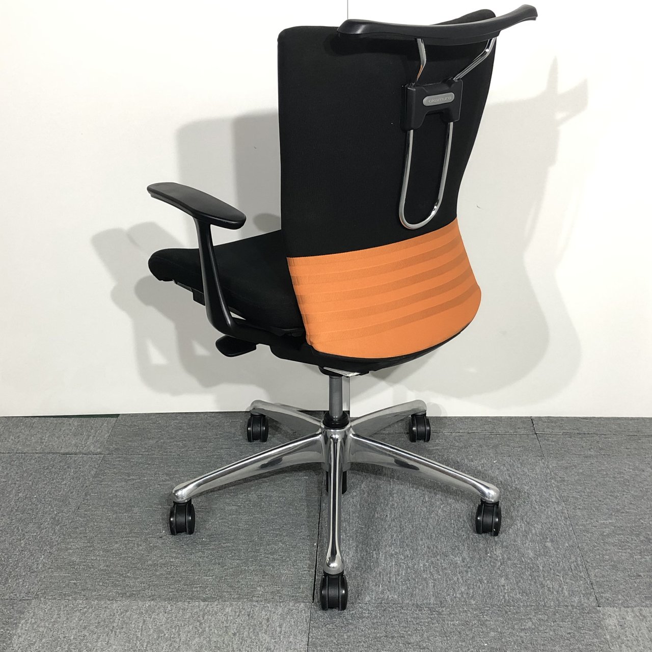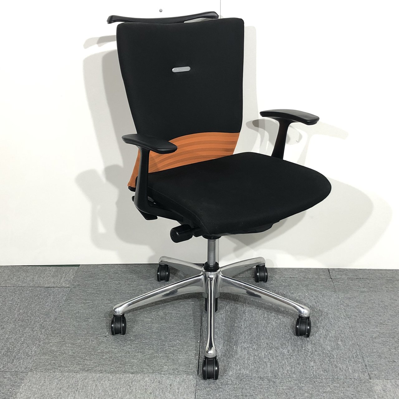 【ミドルクラスチェアの決定版】 根強い人気! オカムラ/フィーゴ/ブラック/シームレスオレンジ/コートハンガー付き