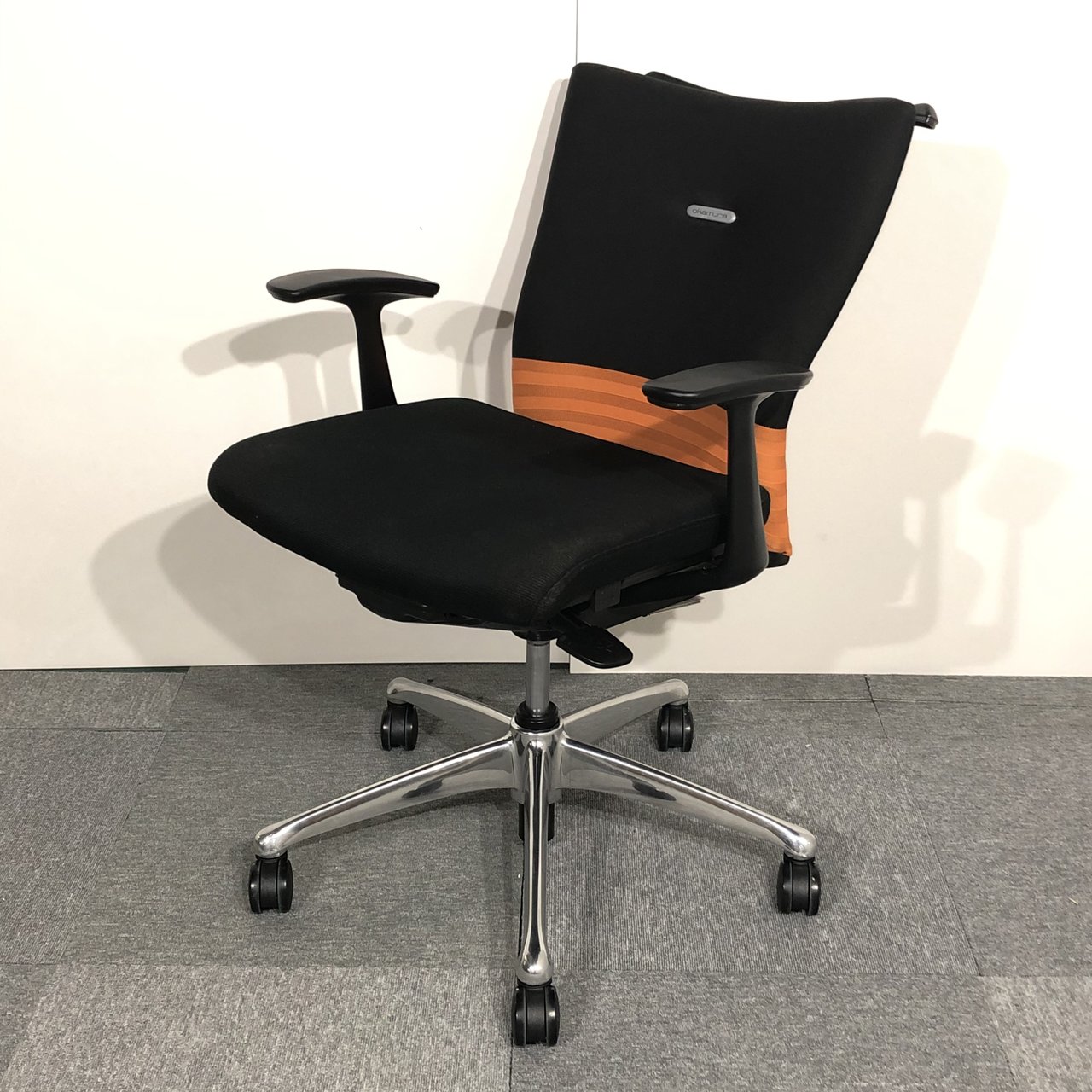 【定番商品!座り心地良好!】オカムラ/フィーゴ ワンポイントオレンジ/デザインアーム/ポリッシュフレーム ★