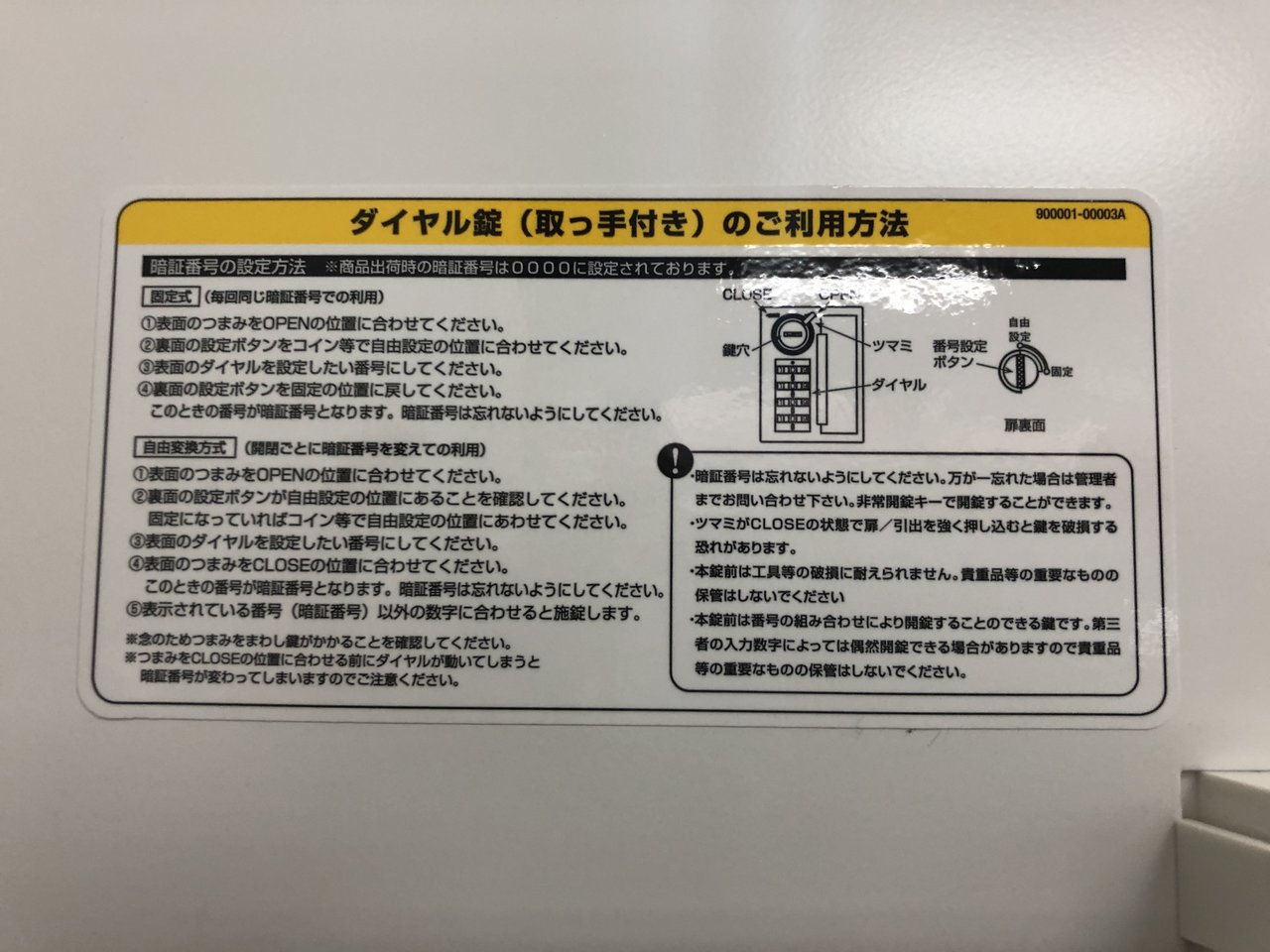 ※購入時点では鍵番号は0000にて固定となっております。