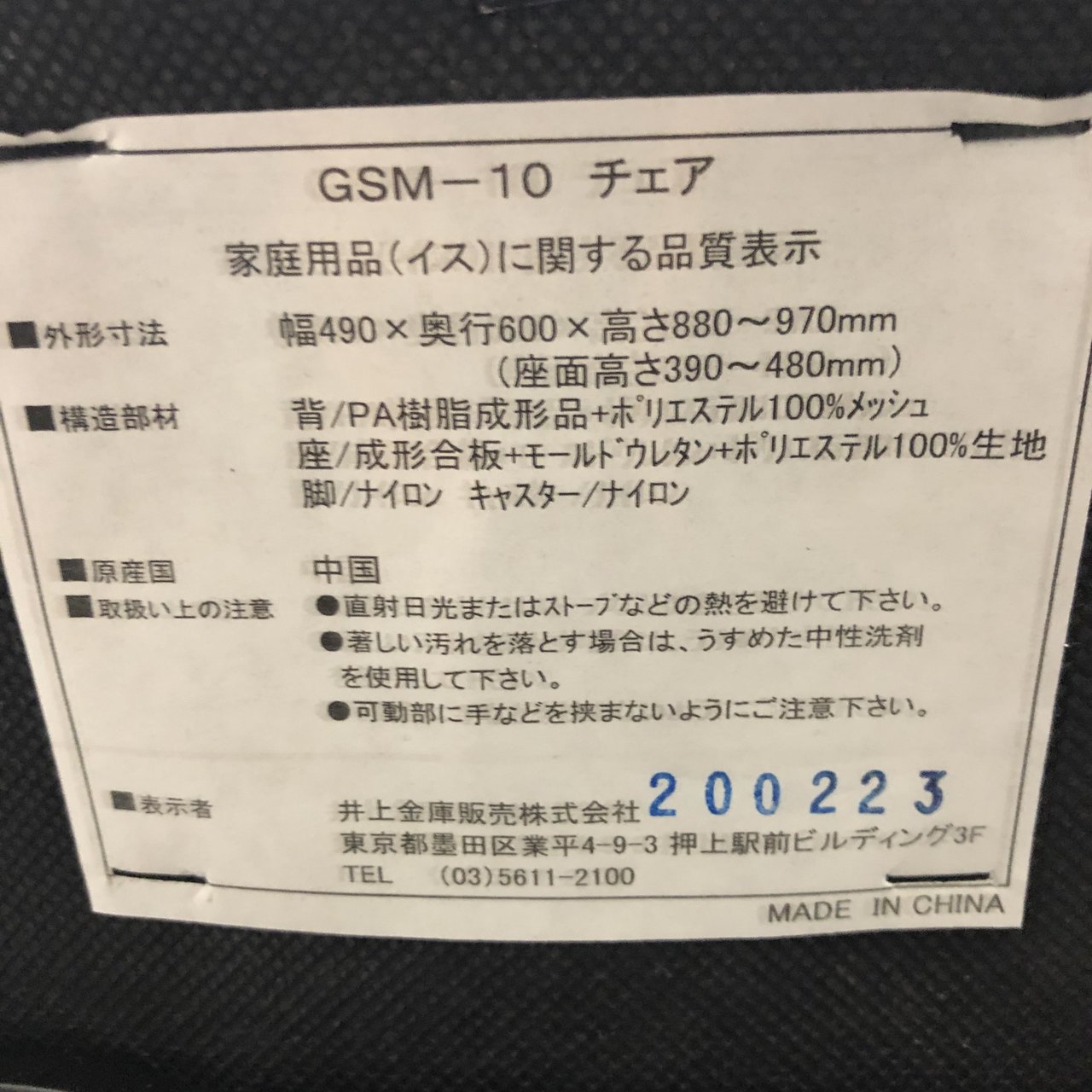 【新古品】 井上金庫 GSM メッシュ背面 ブラック 【新大阪】【中古品】【淀川区】【北区】【吹田】【起業】【テレワーク】