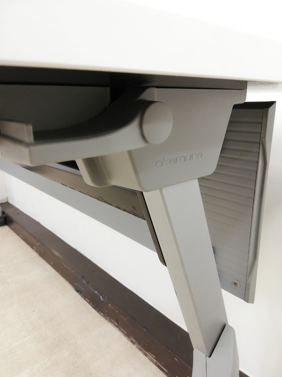 オカムラ|サイドスタックテーブル|ホワイト|シルバー|跳ね上げ【中古家具】【新大阪】【淀川区】【北区】【北摂】【関西倉庫在庫】