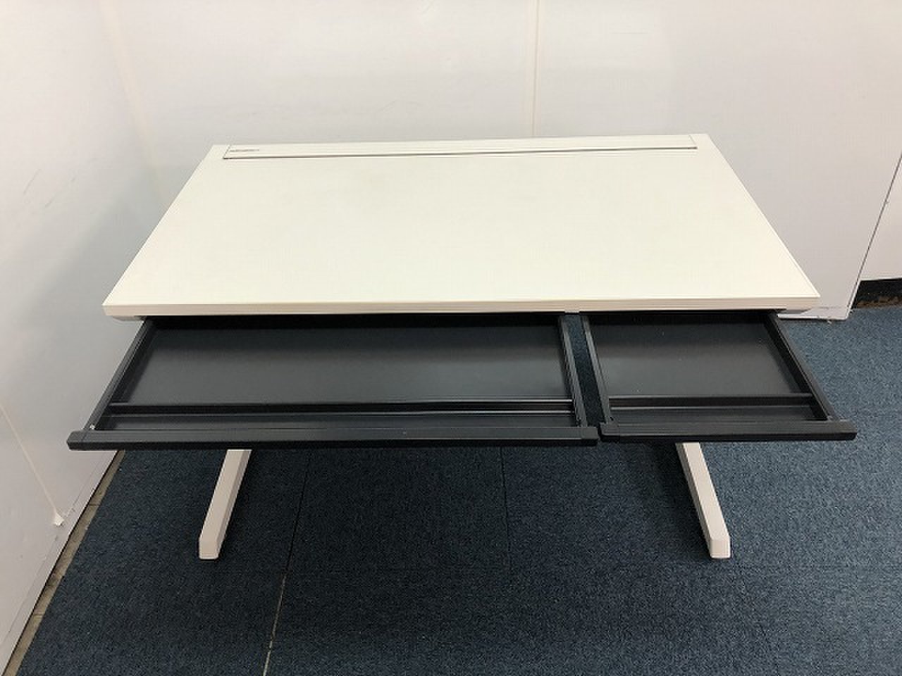 人気のホワイト平デスク W1200なので使いやすいサイズ!!イトーキ製 引き出し2か所