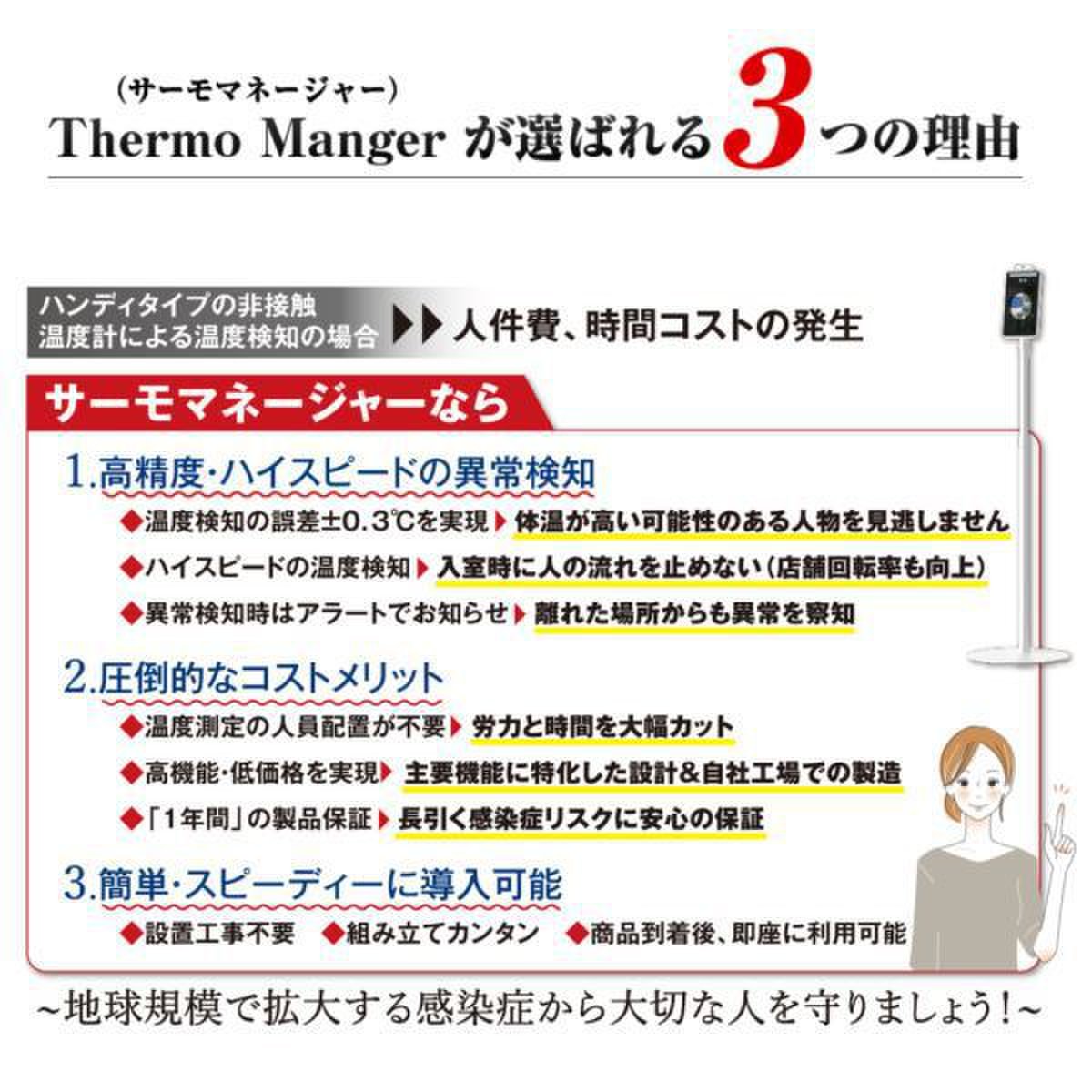 ※本製品は、顔の表面温度を自動検知して、体温が高い可能性のある人物を発見するための装置であり、