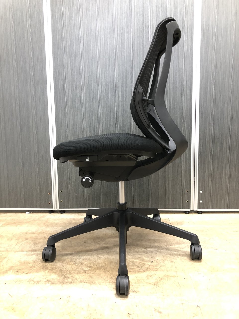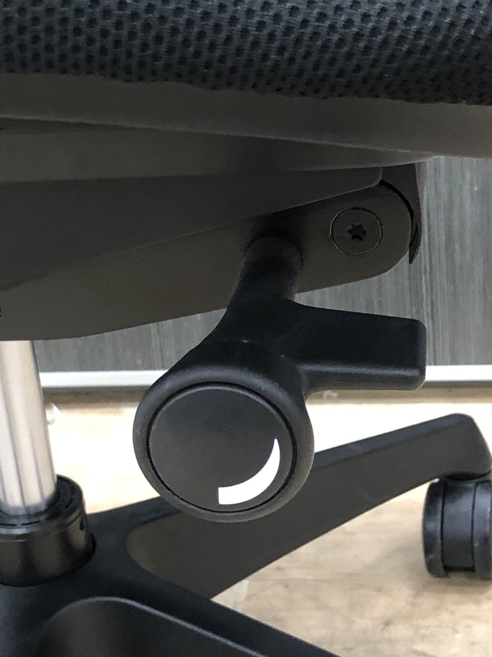 - 座面右下のダイヤル操作で、リクライニングの強弱調整が行えます。これまでのダイヤル式よりも、少ない回転数で、最弱?最強の調整が可能です。