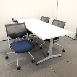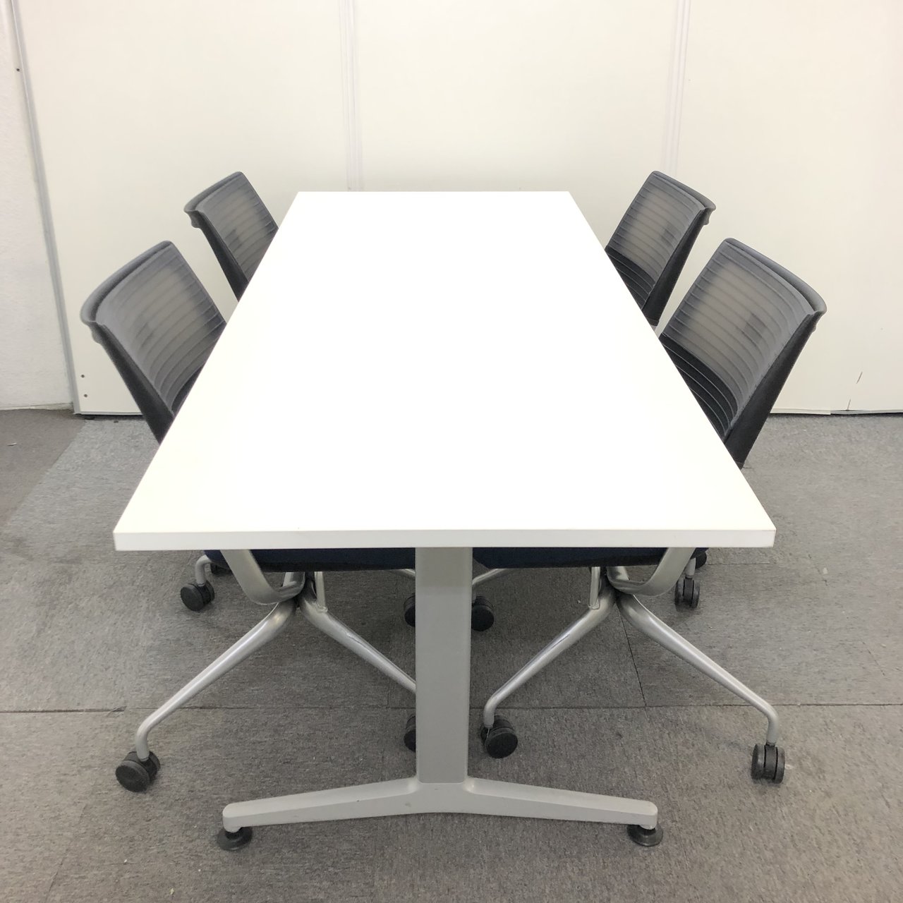 コクヨ製のホワイトカラーのミーティングテーブル+ブルーカラーのチェアの4脚セット!