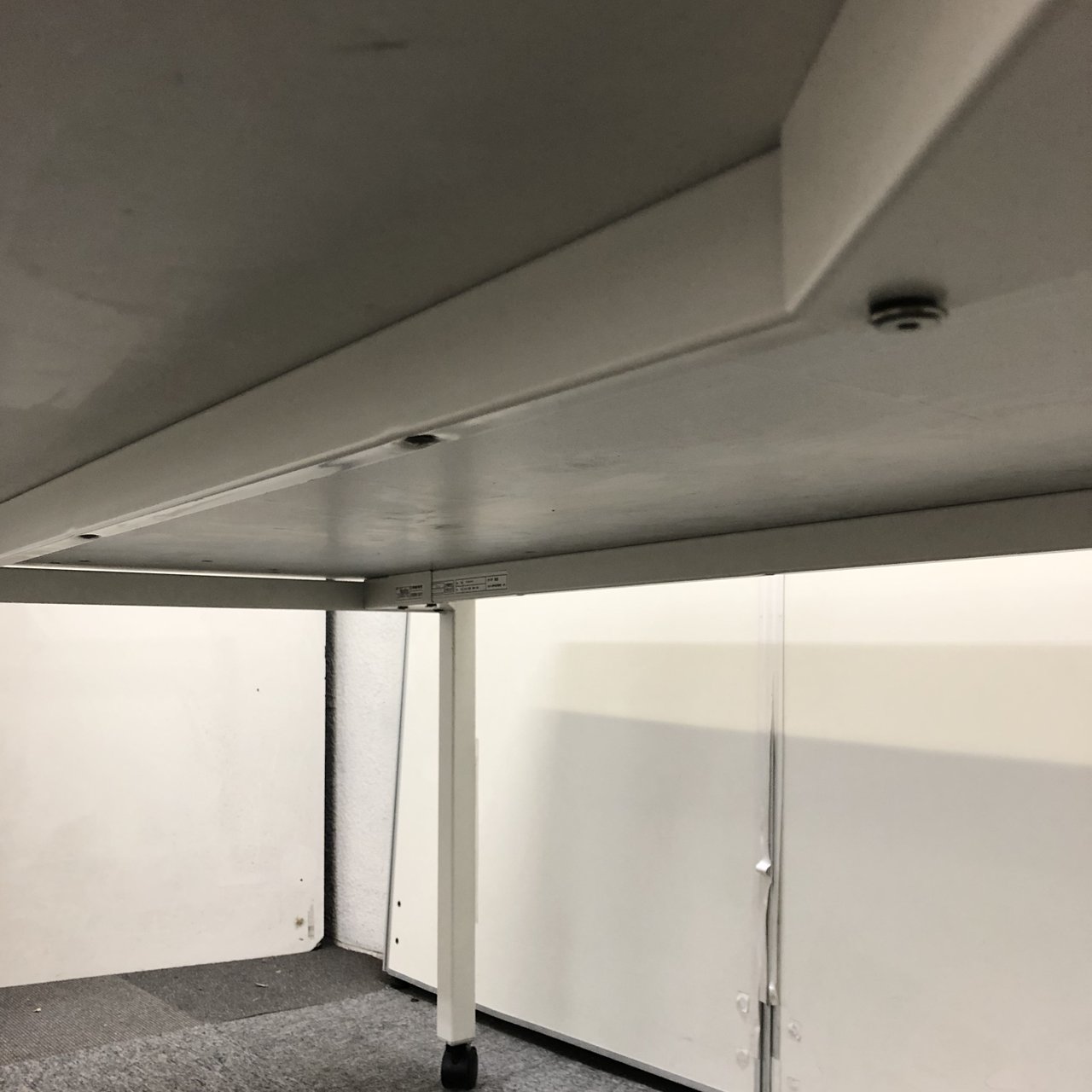 - 一部不具合あり天板歪み、アジャスター無し、キャスター使用不可ようなそのテーブルの本来の効用を果たすための機能以外の一部が使用不可な状態。(例、キャスターロッ ク機能使用不可、棚板無し等がある。)