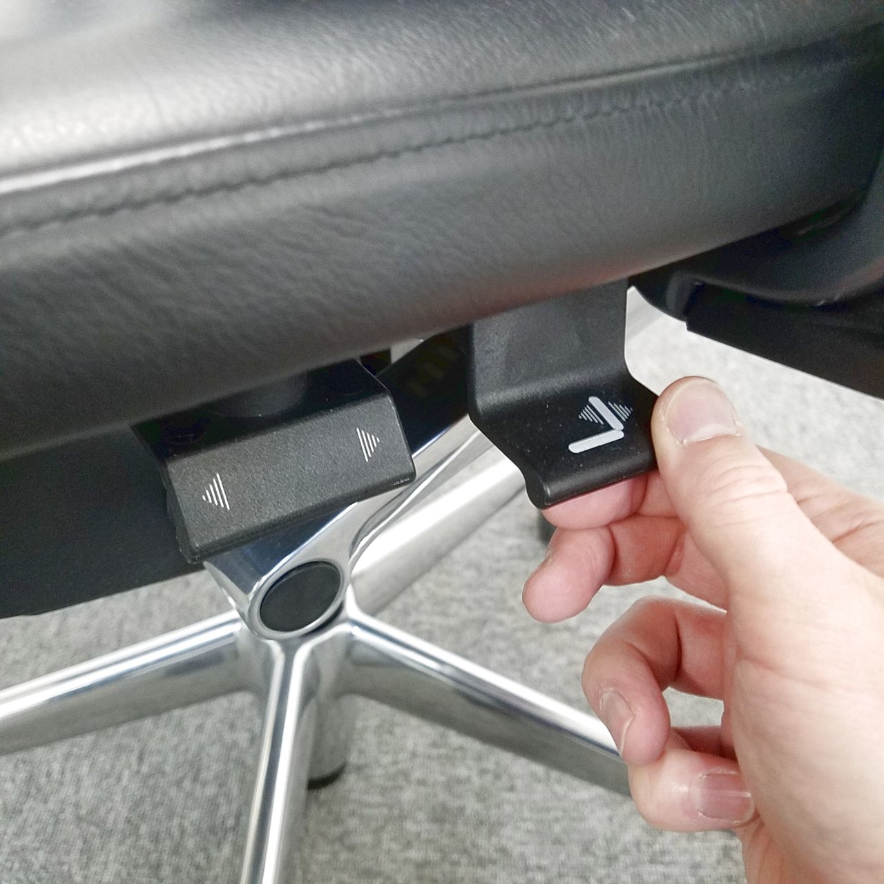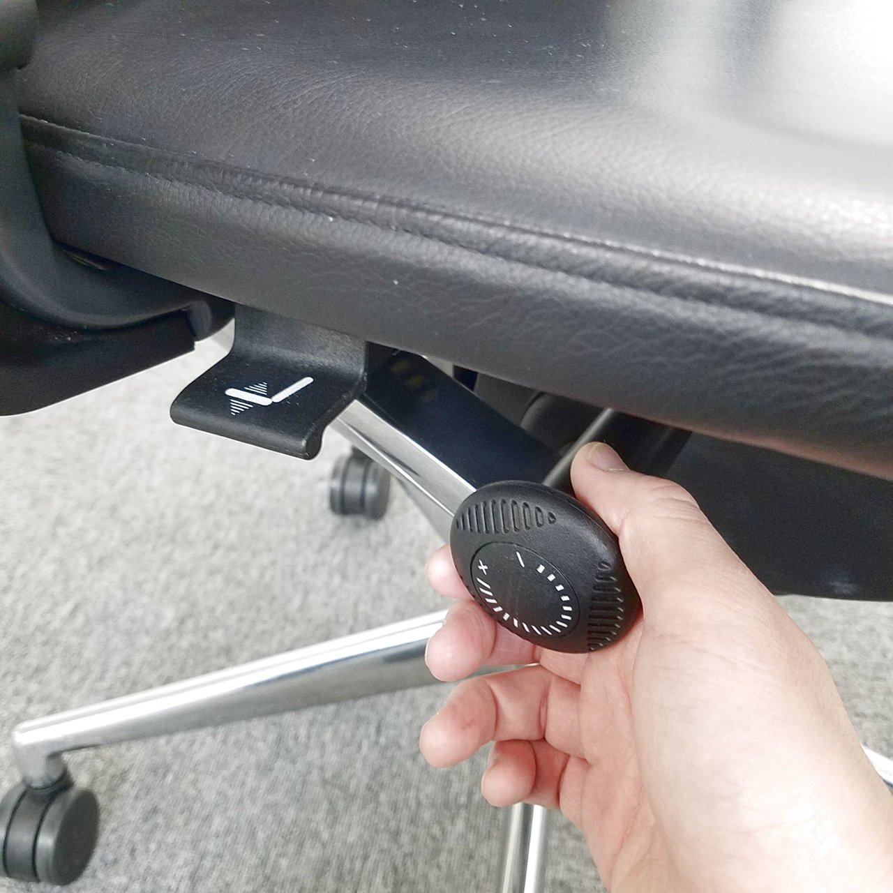 座奥を調整する事により、体格の違いによる調整はもちろん、休憩時は長く、執務時は短く座面を調整する事で